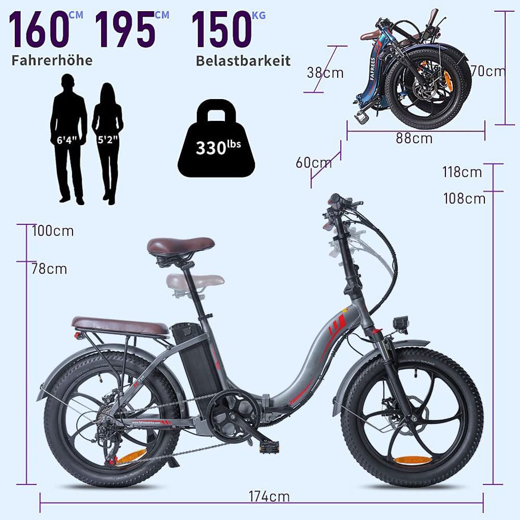 VAKOLE VT4 E-Bike Klapprad 20 Zoll Fatbike - 36V 13Ah Akku, 25 Km/h, Faltbar Für Stadt & Gelände