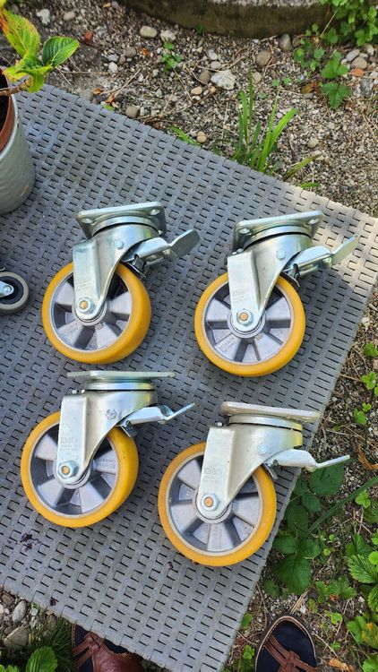 Mach deine Möbel mobil! Diese vier robusten Gummilenkrollen verwandeln schwere Möbelstücke im Handumdrehen in fahrbare Untersätze. Mit M8×50mm Gewinde passen sie perfekt auf die meisten Möbel - ob Sofa, Küchenbank, Bücherregal oder Werkbank. Jede Rolle trägt bis zu 50kg, das Set also stolze 150kg! Die 360-Grad-Drehung macht das Manövrieren super einfach, und die integrierte Bremse sorgt für festen Stand, wenn's sein muss. Die TPE-Gummiräder schonen deine Böden und sind dabei angenehm leise. Einfache Montage mit beiliegendem Schraubenschlüssel und Muttern. Perfekt für Zuhause, Büro oder Werkstatt - endlich mühelos Möbel verschieben für's Putzen oder Umstellen!