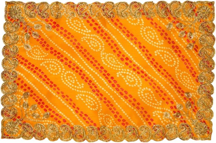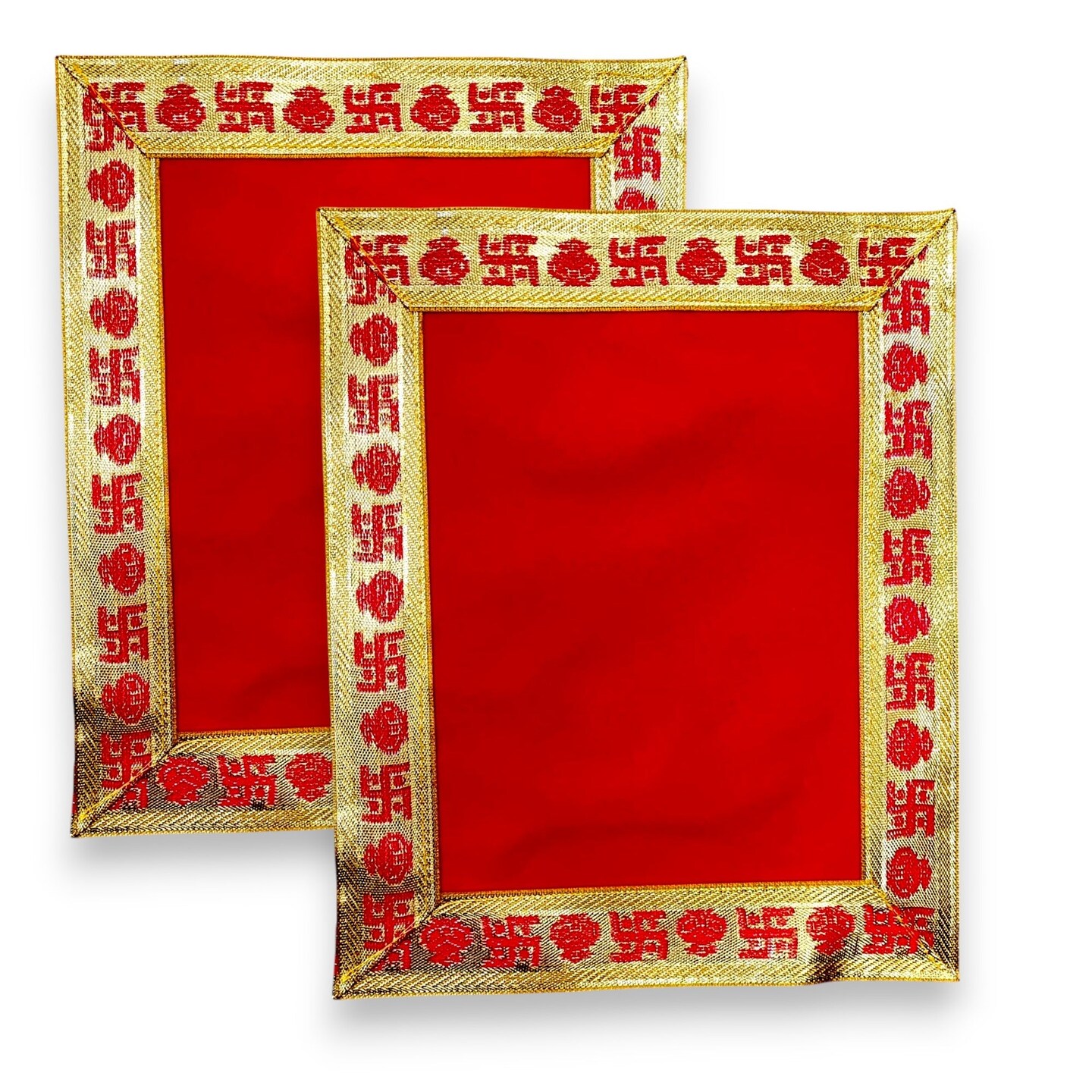 Für eine perfekte Puja-Atmosphäre! Diese wunderschöne rote Pooja Mat im traditionellen indischen Design verwandelt deinen Gebetsbereich in einen heiligen Raum. Mit den Maßen 18x18 Zoll (ca. 45x45 cm) ist sie ideal für Mata ki Chowki, Puja-Tische, Altare oder als Thron für deine Gottheiten. Hergestellt aus hochwertigem Velvet-Stoff mit goldenen Verzierungen und Sequins, die das göttliche Licht wunderbar reflektieren. Diese handgefertigte Aasan dient nicht nur als Unterlage für Idole, sondern auch als dekorativer Hintergrund oder Vorhang für dein Mandir. Perfekt für Diwali, Navratri, Holi und andere religiöse Feste. Die leichte und dennoch wertige Verarbeitung macht sie zu einem besonderen Stück für jedes Zuhause. Ob für tägliche Gebete oder besondere Zeremonien - mit dieser Pooja Mat schaffst du sofort eine spirituelle Atmosphäre. Ein essentielles Accessoire für jede indische Familie!