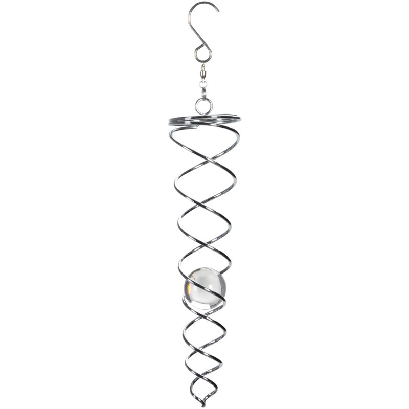 Bezaubernde Windspirale für deinen Garten! Mit 9 Zoll (ca. 23cm) Größe und glitzernden Kristallkugeln verwandelt sie jeden Windhauch in ein faszinierendes Schauspiel. Aus hochwertigem Edelstahl gefertigt, wetterbeständig und langlebig. Die silberne Spirale dreht sich anmutig im Wind, während die 2 Kristallkugeln das Licht in Regenbogenfarben brechen. Komplett mit drehbarem Aufhänger - einfach zu installieren ohne Werkzeuge. Wunderschön verpackt, ideal als Geschenk für Gartenliebhaber. Bringt Leben und Eleganz in deinen Outdoor-Bereich!