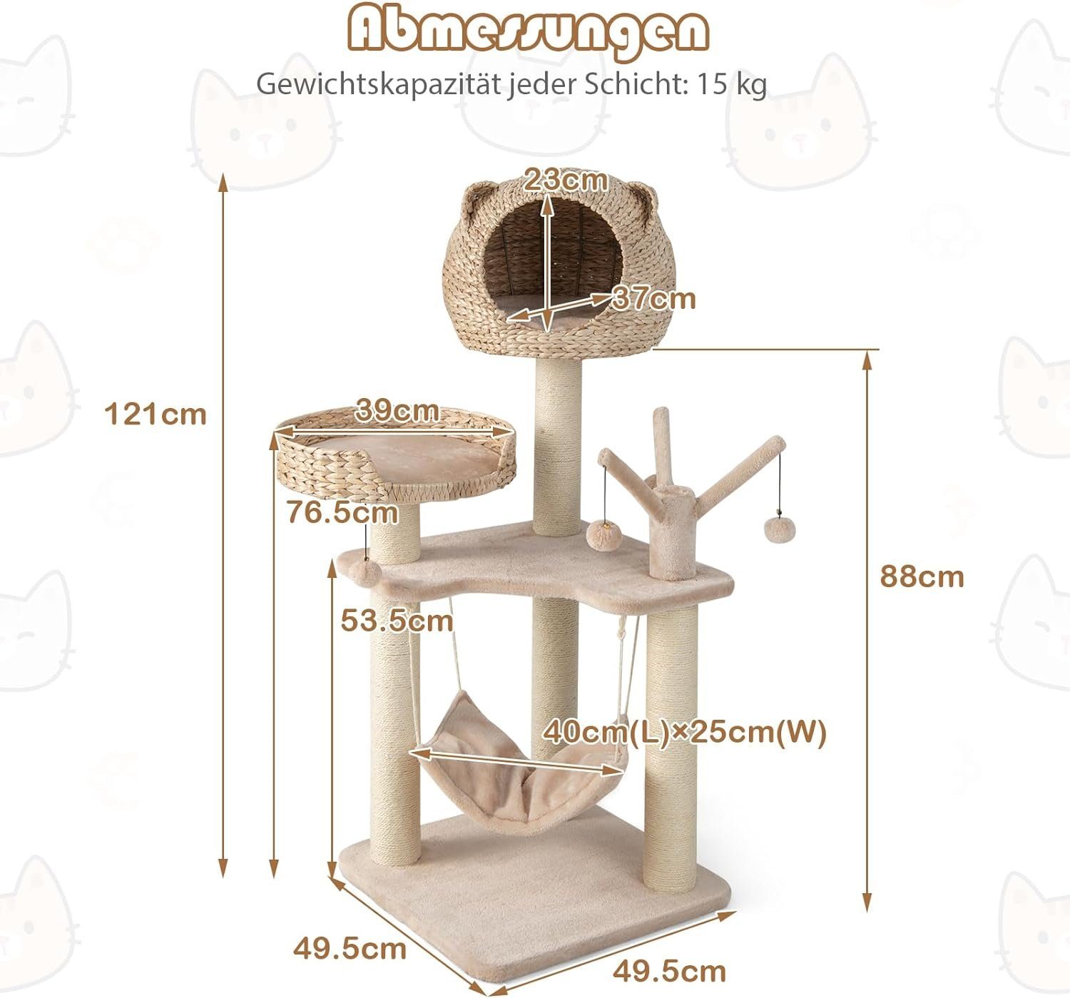 Zqkimzi Kratzbaum Mit Spieltunnel & Hängematte - Massivholz Katzenklettergerüst Mit Sisal