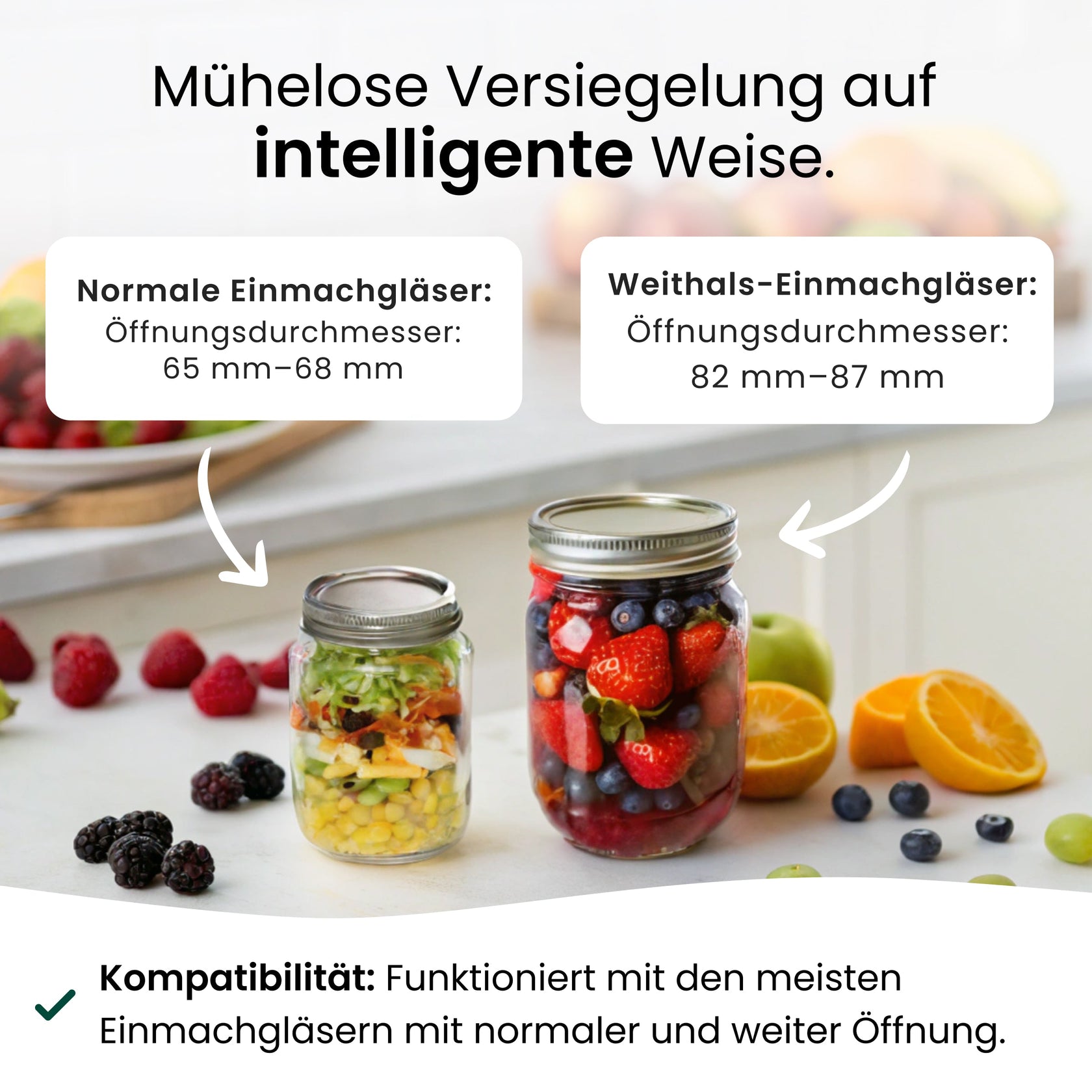 Boah, dieser FreshGuard Vakuumierer ist echt praktisch! Einfach aufs Einmachglas setzen, Knopf drücken und zack - deine Lebensmittel sind luftdicht verschlossen. So bleiben sie bis zu 5x länger frisch! Super für Meal Prep oder wenn man mal zu viel gekocht hat. Kein Einwegplastik mehr nötig, denn du kannst deine eigenen Gläser immer wieder verwenden. Das Gerät stoppt automatisch nach maximal 60 Sekunden - also keine Angst vor Fehlbedienung. Perfekt für alles mögliche: Von trockenen Nudeln über Flüssigkeiten bis zu festen Lebensmitteln. Spart echt Geld, weil weniger weggeschmissen werden muss. Wusstest du, dass jeder Haushalt im Schnitt 30% seiner Lebensmittel verschwendet? Mit dem FreshGuard gehört das der Vergangenheit an! Einfach genial für alle, die nachhaltiger leben wollen und ihre Lebensmittel länger genießen möchten. Macht die Küchenorganisation so viel einfacher!