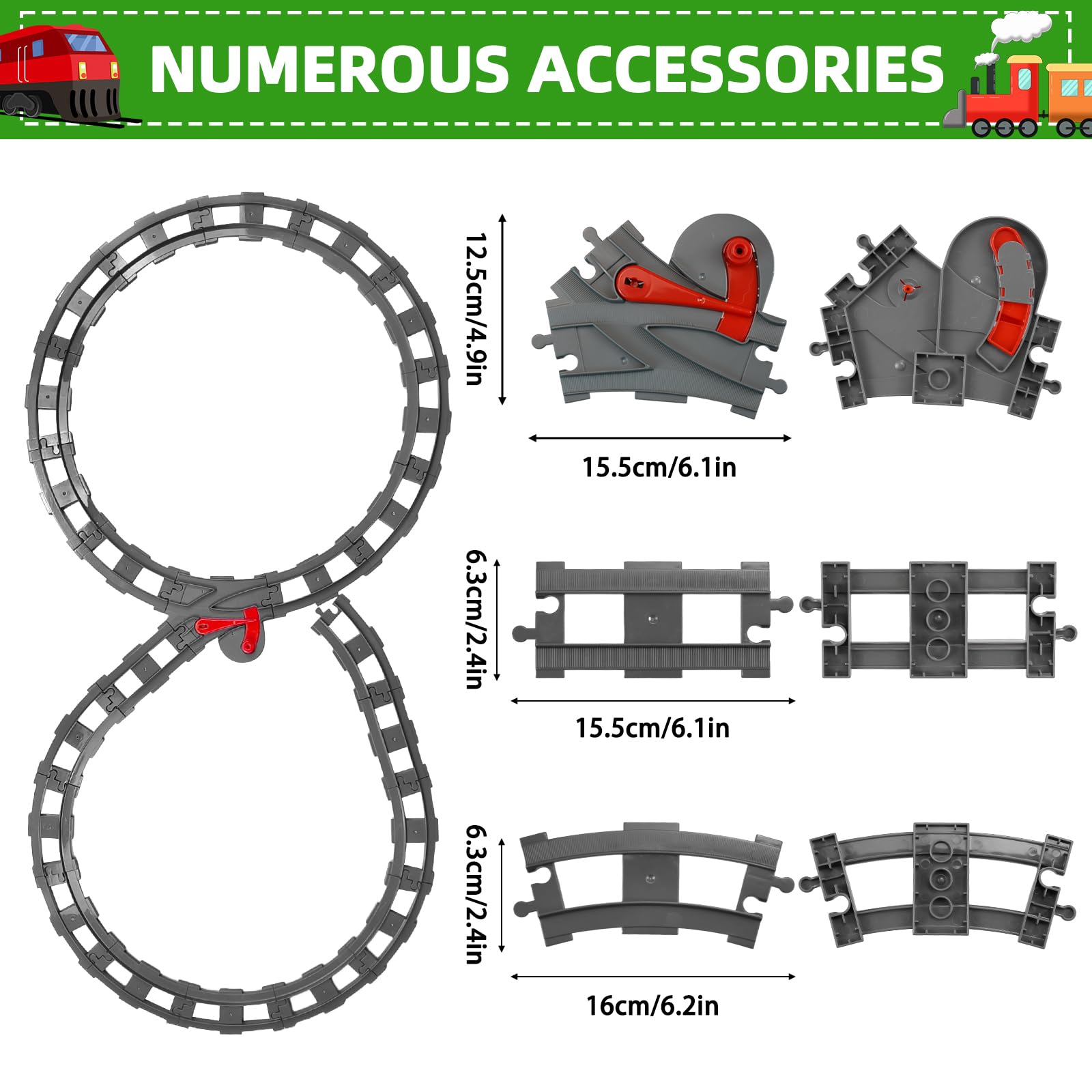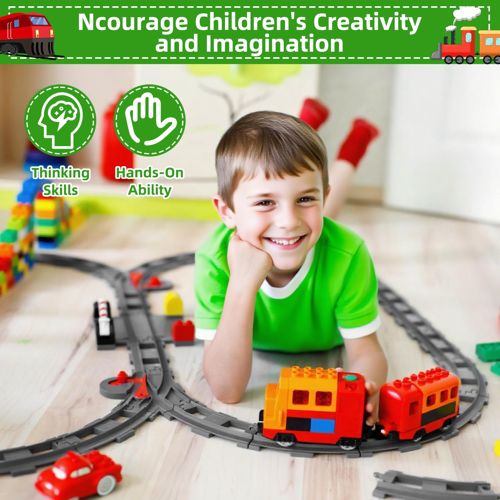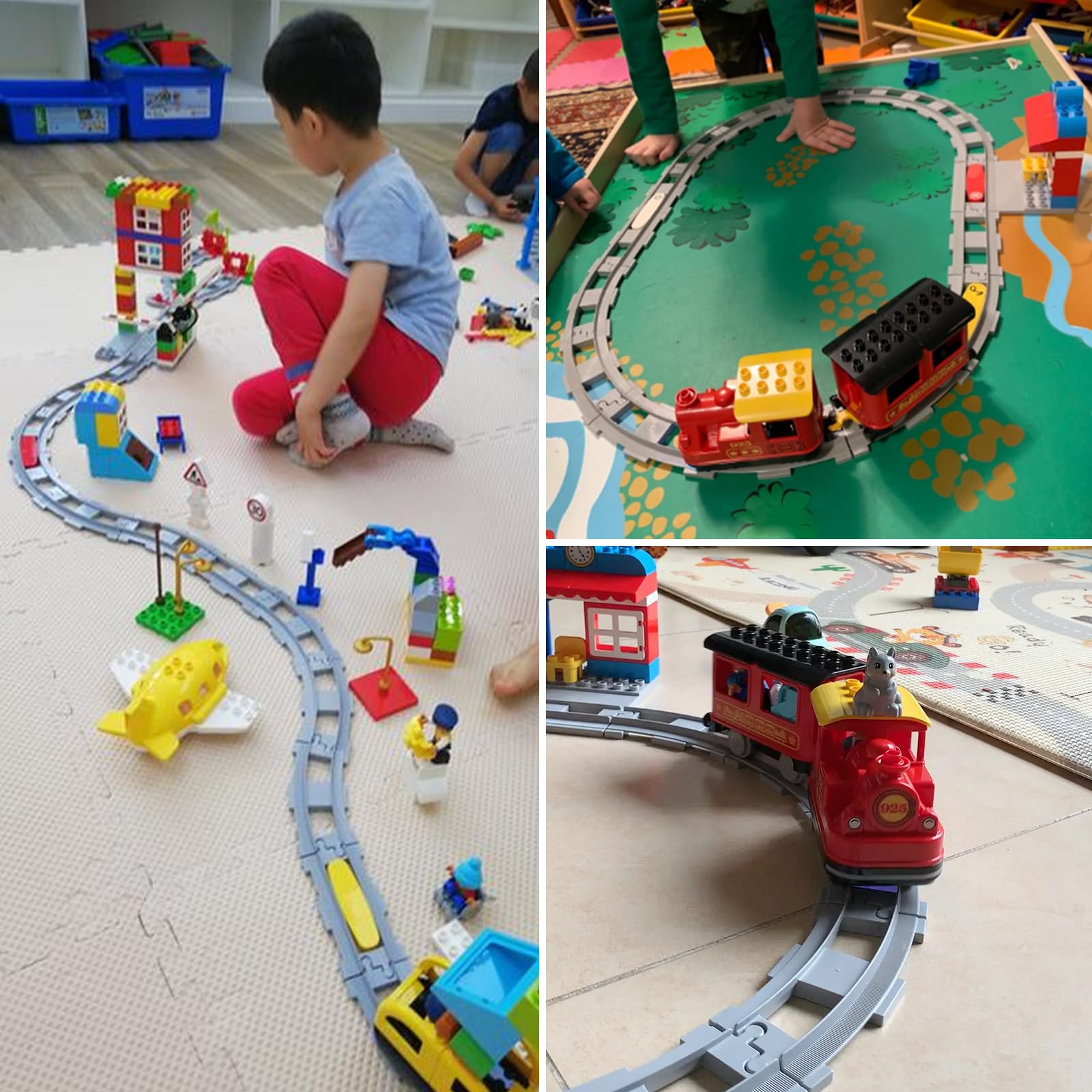 All aboard! Mit diesem 32-teiligen Schienen-Set bauen deine Kinder die coolsten Eisenbahn-Strecken. Enthalten sind gerade Schienen, Kurven und Ersatzteile - alles was man für kreative Bahnstrecken braucht. Kompatibel mit den meisten Marken-Bausteinen, also super zur Erweiterung vorhandener Sets. Aus hochwertigem ABS-Material, das nicht so leicht bricht. Kinder können damit ihrer Fantasie freien Lauf lassen: Kreisförmige Strecken, Achten oder ganz verrückte Konstruktionen. Fördert die motorischen Fähigkeiten und das räumliche Denken. Einfach zu verbinden und wieder auseinander zu nehmen - da macht das Umbaum genauso viel Spaß wie das Spielen! Perfekt für Kinder ab 3 Jahren (unter Aufsicht natürlich). Ein super Geschenk für kleine Eisenbahn-Fans - da strahlen nicht nur Kinderaugen!