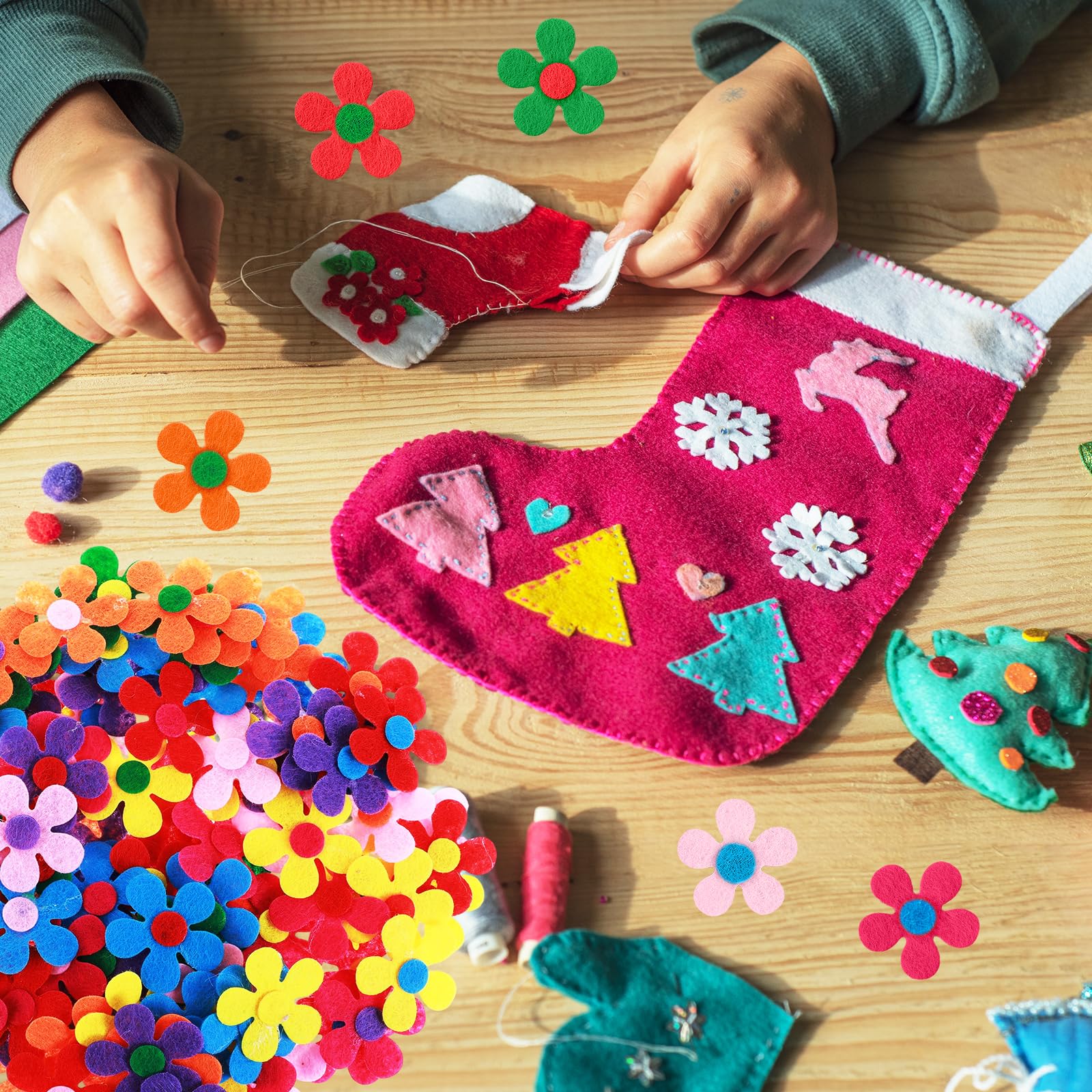 100 Filzblumen Zum Basteln - 5-blättrig, Bunt, 3cm Für DIY Projekte & Deko