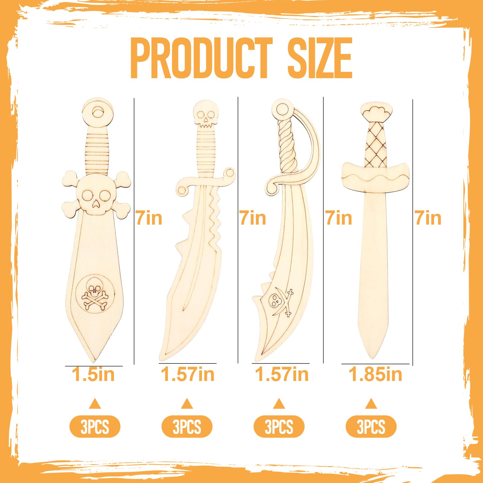 12 Stück Holzpiratenschwerter Zum Bemalen - DIY Bastelset Für Kinder