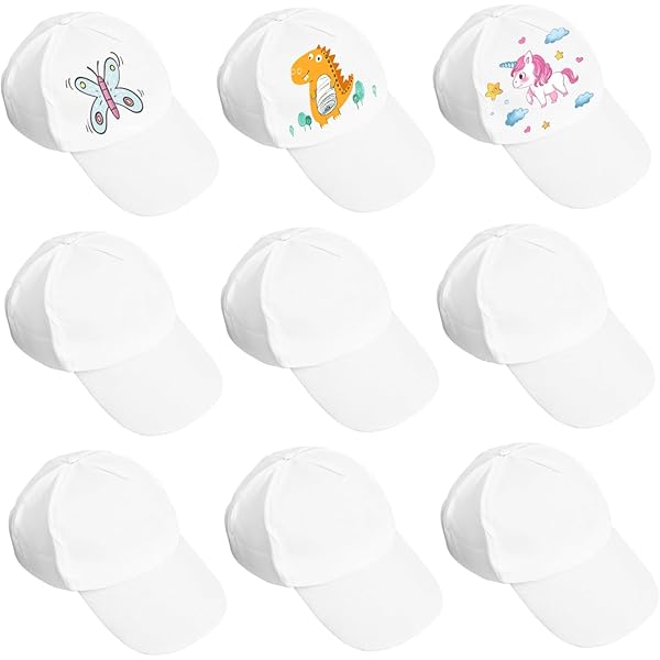 10 Weiße Baumwoll-Kappen Zum Bemalen - DIY Blanko-Hüte Für Kinder Und Erwachsene