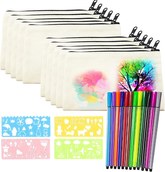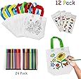 KASURE 16 Stück Stoffbeutel Zum Bemalen Für Kinder - DIY Set Mit 10 Wachsmalstiften