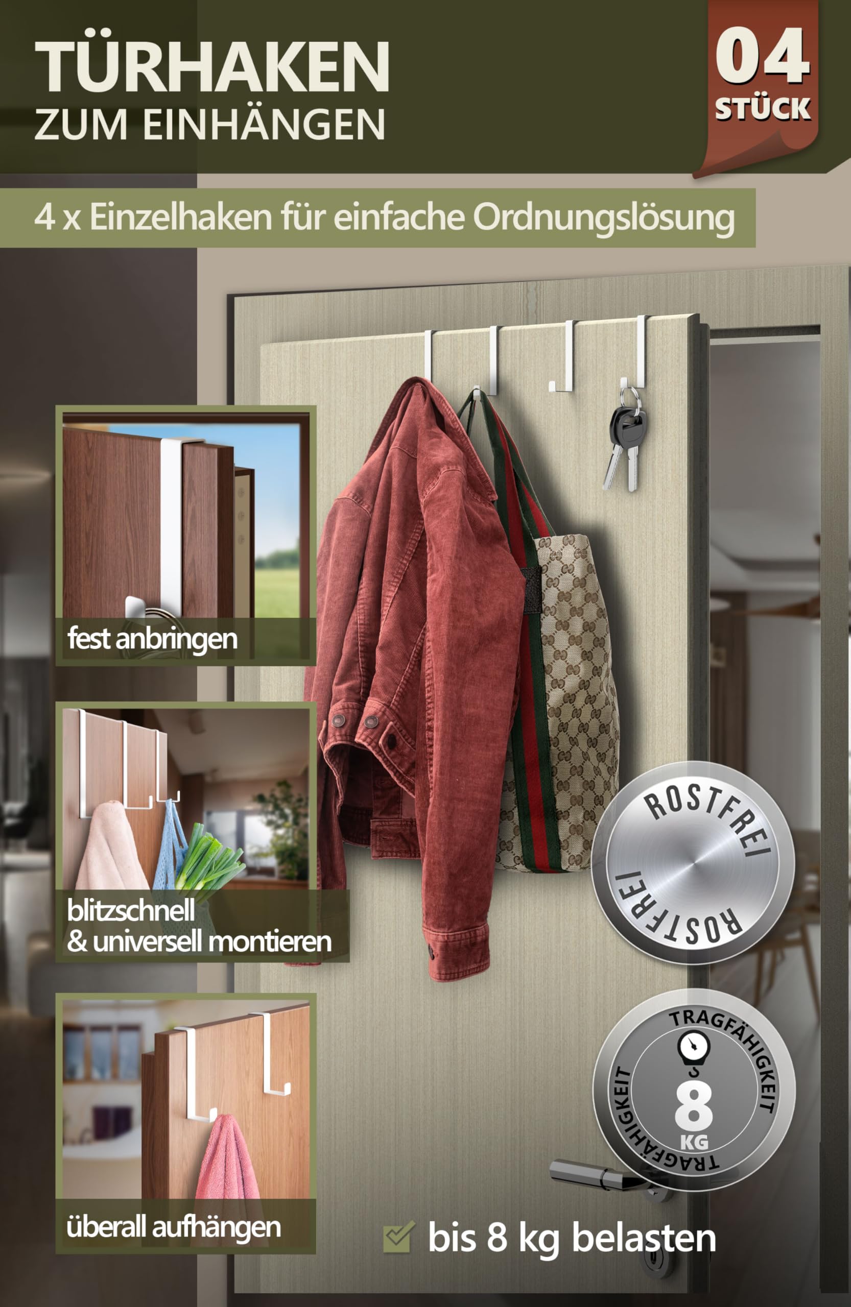 Türhaken Zum Einhängen - 6 Stück Weiß Für Platzsparende Garderobe An Zimmertüren