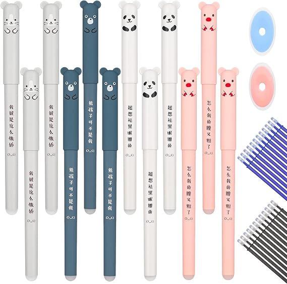 Wie süß sind denn diese Stifte? Das Set hat 6 verschiedene Tier-Designs mit Giraffe, Kuh, Hase und mehr! Das Besondere: Du kannst alles was du schreibst einfach wieder wegradieren - ganz ohne Tipp-Ex oder Papierfetzen. Die 0.5mm Mine schreibt superfein und gleitet richtig smooth übers Papier. Der Radiergummi an der Stiftspitze ist extra langlebig und macht keine schmierigen Flecken. Perfekt für Schulkinder, die oft was korrigieren müssen, oder fürs Büro wenn's mal schnell gehen soll. Die Stifte liegen gut in der Hand und werden nicht so schnell schwer, selbst wenn man ewig schreibt. Umweltfreundlich sind sie obendrein, weil du kein Papier verschwendest. Einfach losschreiben, Fehler wegradieren, und weiter geht's! Tolle Begleiter für Hausaufgaben, Mitschriften oder kreative Notizen.