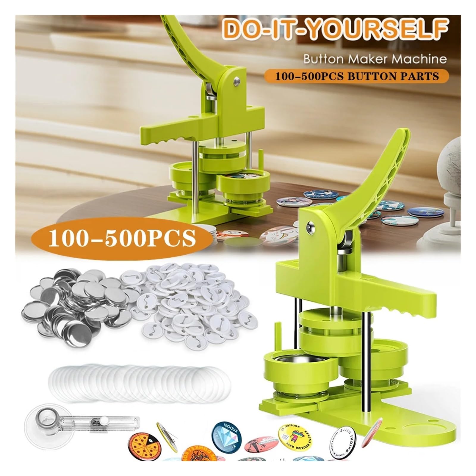 Button Maker Set - Komplettset Zum Selbermachen Von Ansteckern Mit 100 Teilen & Regenbogenfolie
