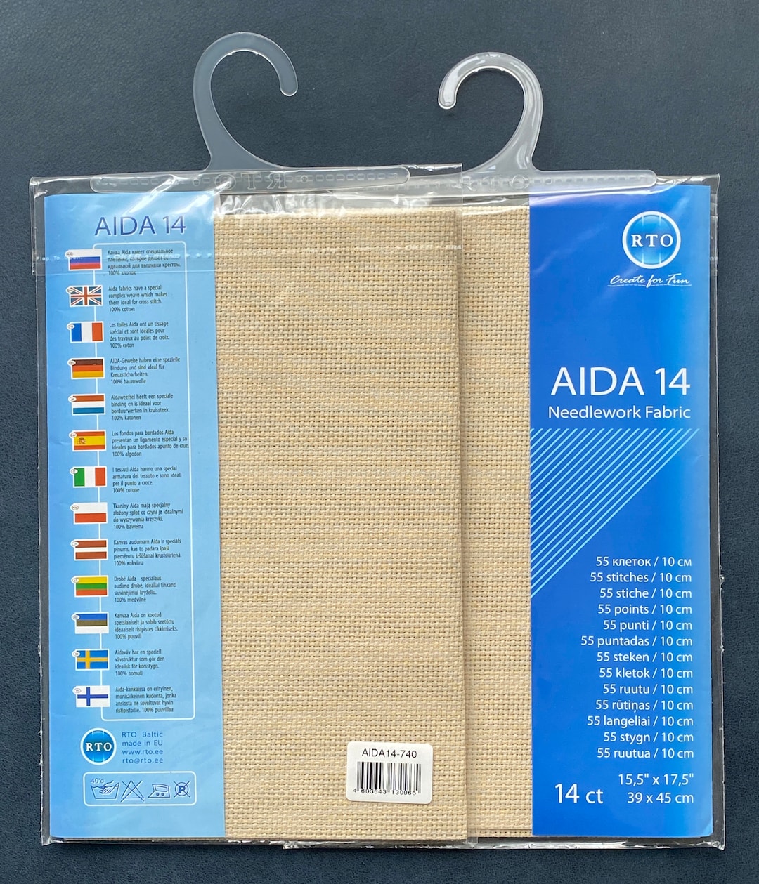 RTO Aida Stickstoff Zuschnitt 14ct - 39x45cm Beiger Handarbeitsstoff Aus Baumwolle