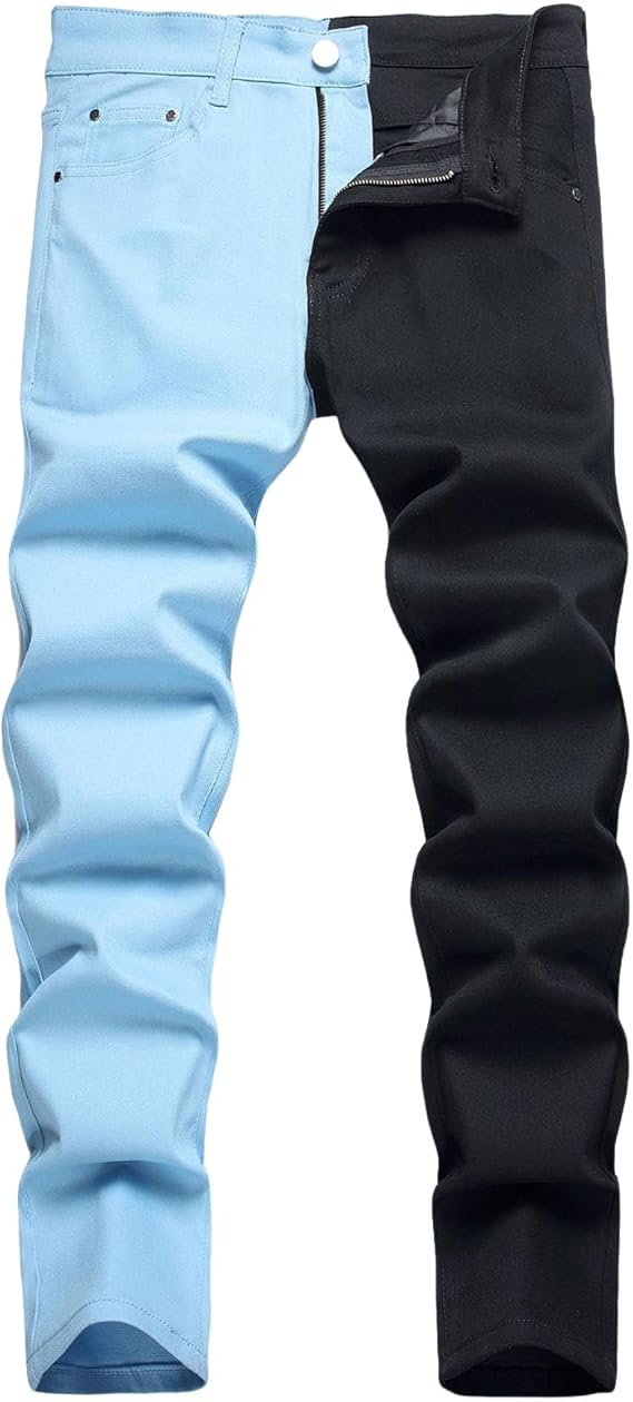 Herren Slim Fit Jeans Zweifarbig - Kontrast Hose Street Fashion Skinny Fit