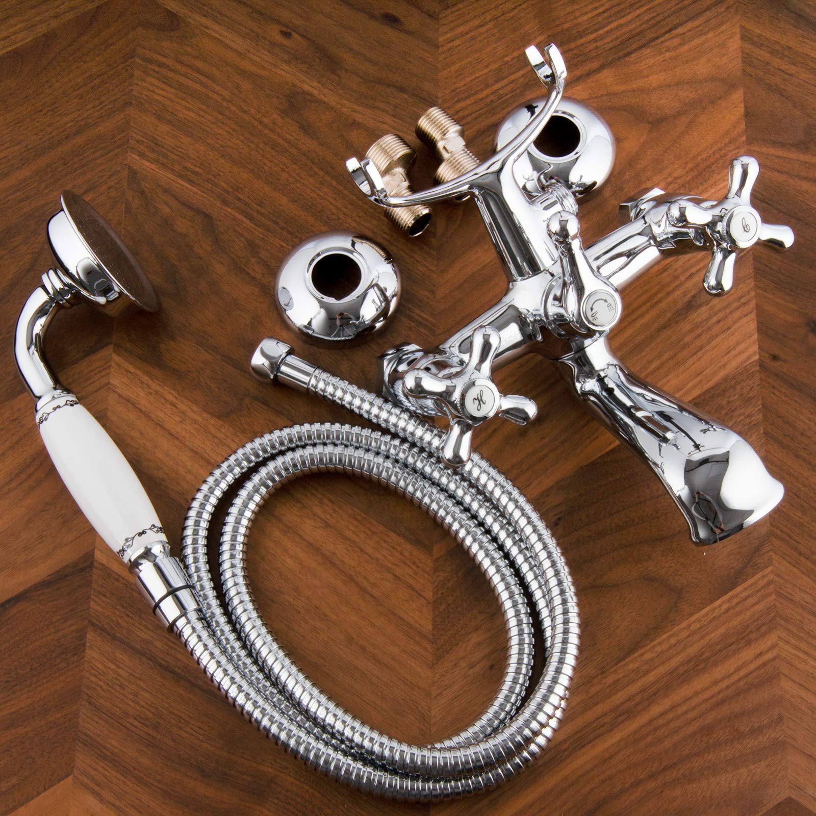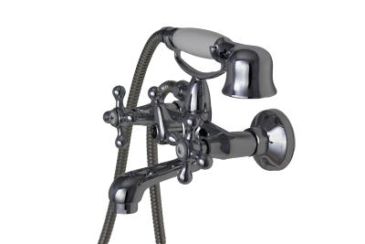Ferro Retro Badewannenarmatur - Zweigriff Armatur Mit Kreuzgriffen & Handbrause Chrom