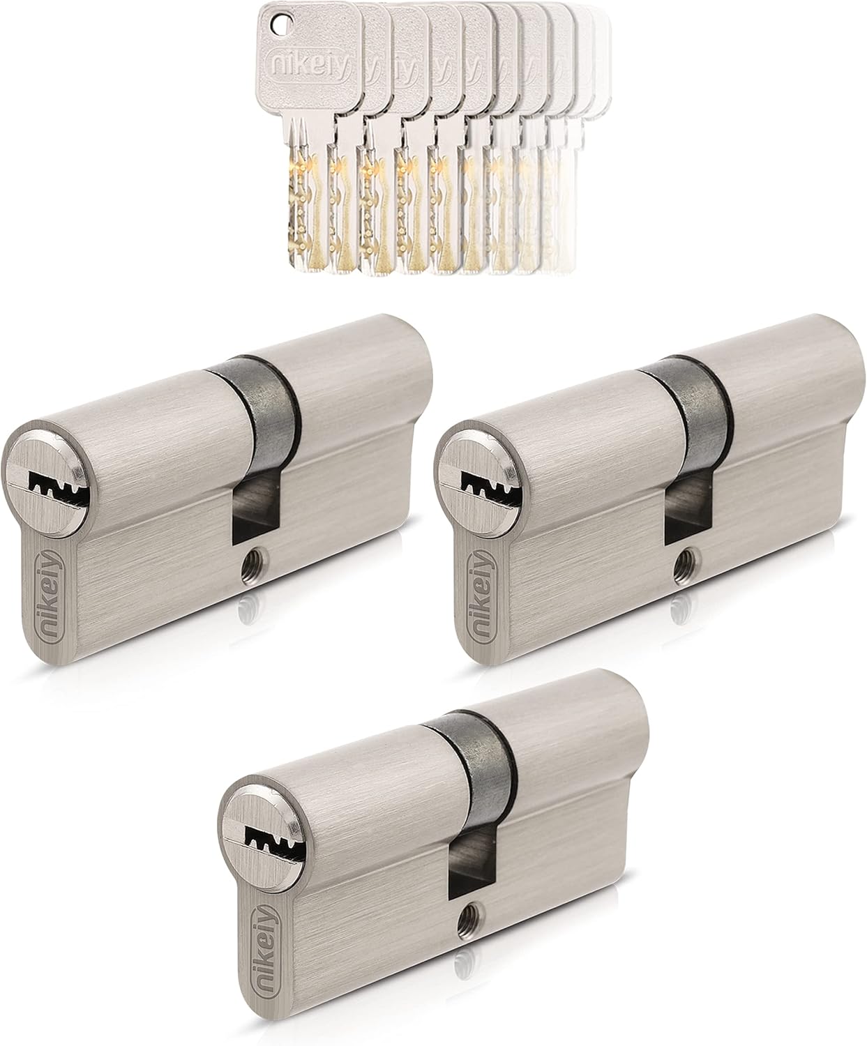 Sicherheit muss nicht teuer sein! Diese Elrozo Zylinderschlösser im 2er Set sind gleichschließend - ein Schlüssel passt für beide! Maße: 60mm (30/30), inklusive 5 Schlüssel und Befestigungsschrauben. Einfach mit Schraubendreher montiert. Für Innen- und Außentüren geeignet. Aber Achtung: Nur Knaufzylinder haben Notfunktion (von außen aufschließbar wenn Schlüssel innen steckt). Deutsche Qualität zu fairem Preis - damit bist du auf der sicheren Seite!