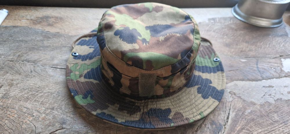 Suchst du einen robusten Outdoor-Hut, der wirklich was aushält? Dieser MILITAR Boonie Cap im belgischen Armee-Design ist dein neuer bester Begleiter! Mit dem authentischen Jigsaw-Camouflage-Muster bist du perfekt getarnt - ob beim Angeln, Jagen oder Camping. Die breite Krempe schützt dein Gesicht und Nacken zuverlässig vor der Sonne, während die Netz-Belüftungslöcher für angenehme Kühlung sorgen. Hergestellt aus 50% Baumwolle und 50% Polyester Ripstop-Material ist der Hut leicht, atmungsaktiv und mega langlebig. Die verstellbare Kordel sorgt für perfekten Halt, auch bei Wind. Egal ob du in den Tropen unterwegs bist oder einfach nur im heimischen Wald - dieser Militärhut hält deinen Kopf kühl und geschützt. Ein echter Profi-Hut für alle Outdoor-Aktivitäten, der Jahre lang halten wird. Verabschiede dich von billigen Kopfbedeckungen - hier kriegst du Qualität, die überzeugt!