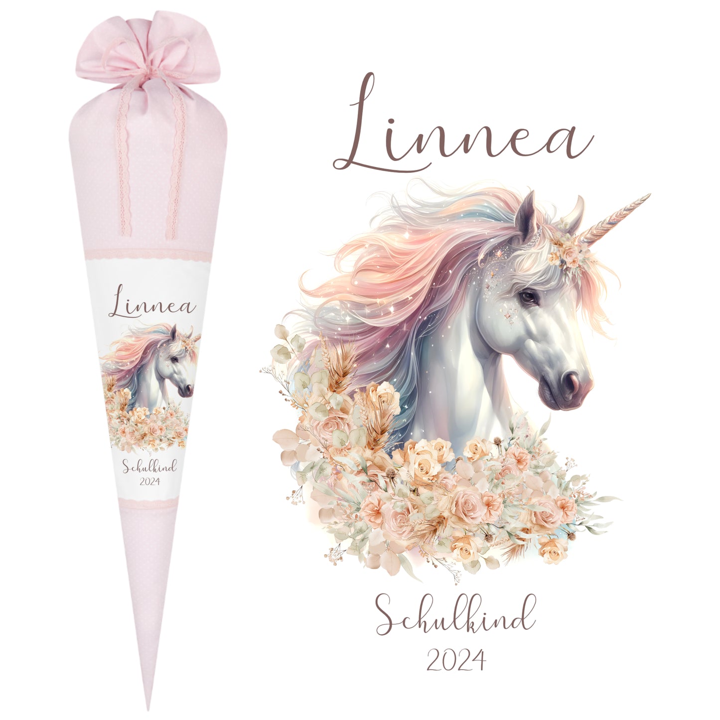Einhorn Schultüte Mina 85cm | Glitzer Zuckertüte Mit Namensfeld Für Mädchen