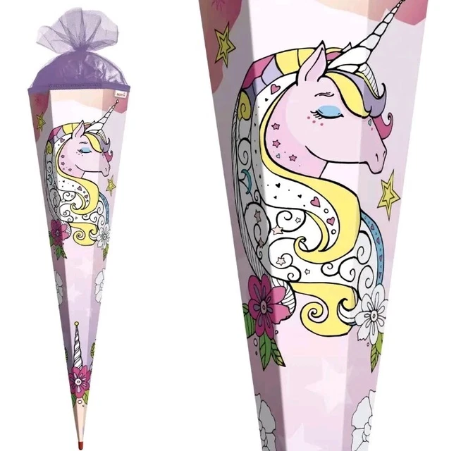 Die perfekte Schultüte für den ersten Schultag! Diese Einhorn-Schultüte 'Mina' ist mit 85 cm richtig groß und bietet jede Menge Platz für Süßigkeiten, Schulmaterial und kleine Überraschungen. Das zarte Einhorn-Design mit Glanzfolie sieht einfach magisch aus und wird jedes Mädchenherz höher schlagen lassen. Besonders praktisch: Das integrierte Namensfeld - so wird die Schultüte zu einem persönlichen Erinnerungsstück! Die 6-eckige Form mit der roten Holzspitze ist super stabil und hält auch mal was aus. Hergestellt in Deutschland aus FSC-zertifiziertem Material - also auch noch umweltfreundlich. Ob für die Einschulung oder als Geschenk - diese Schultüte macht den großen Tag unvergesslich! Einfach Namen eintragen und staunen, wie stolz dein Kind damit in die Schule geht.