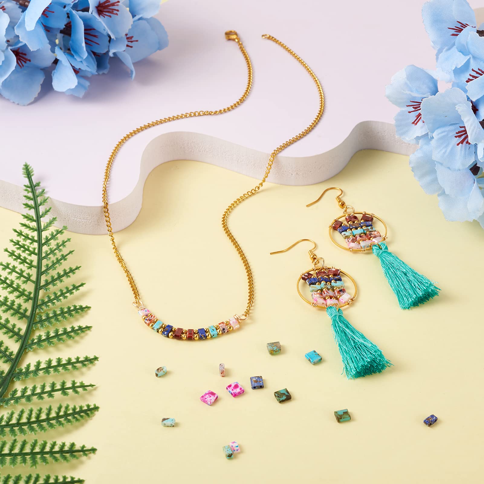 CRAFTYMELODY 300 Stück Fliesenperlen Set - 2 Loch Glasperlen Für Schmuck