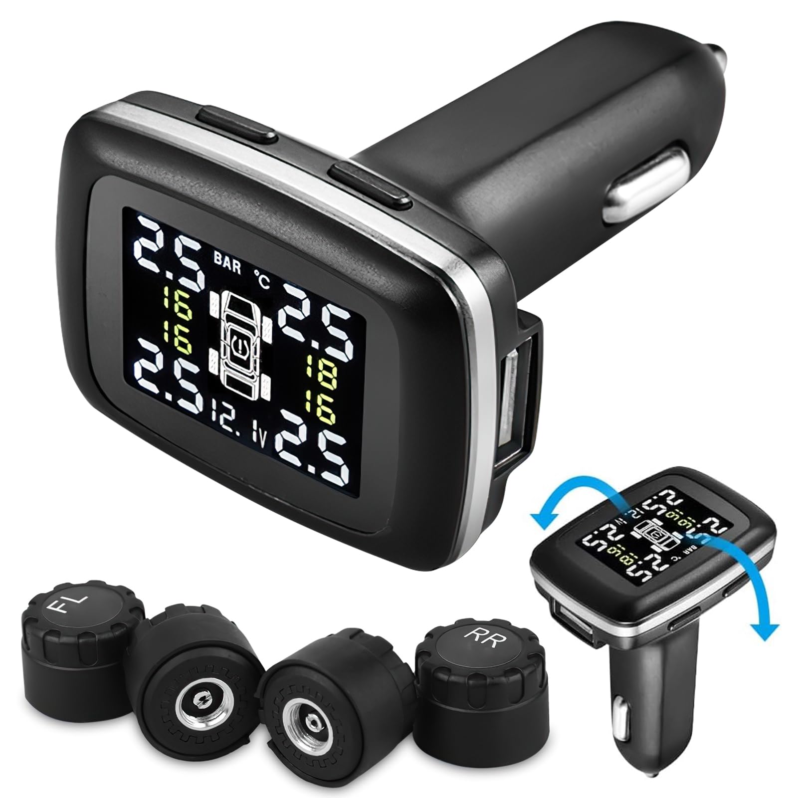 OBEST Motorrad TPMS Reifendrucküberwachung - 2 Externe Sensoren LCD Display