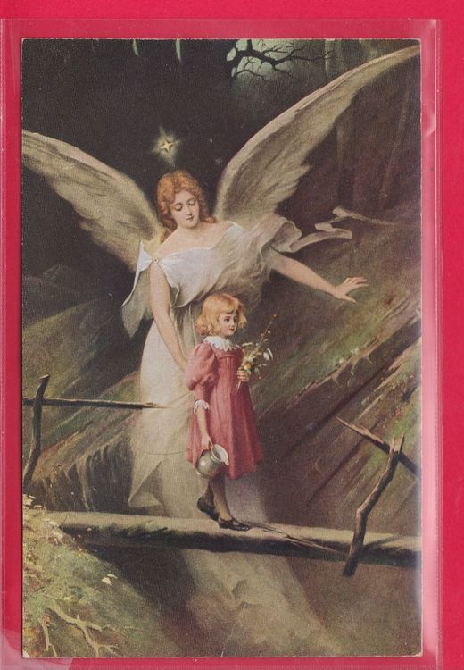Lunexus Schutzengel Gebetsbild 12x17 Cm - Gesegnetes Wandbild Mit Holzrahmen Für Kinderzimmer