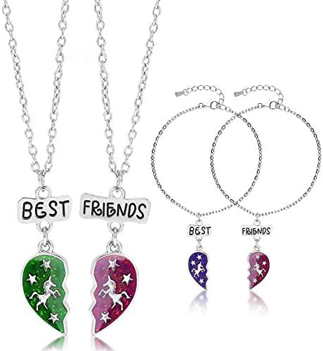 Diese süßen BFF-Halsketten sind perfekt, um eure Freundschaft zu zeigen! Jede Kette hat ein halbes Herz mit Einhorn-Verzierung – und wenn ihr zusammenkommt, verbinden sich die Herzen magnetisch zu einem Ganzen. Einfach zauberhaft! Hergestellt aus umweltfreundlicher Legierung, nickel- und bleifrei, also auch für empfindliche Haut geeignet. Die Ketten sind verstellbar und liegen perfekt an. Ein ideales Geschenk für beste Freundinnen, Schwestern oder die Mama – zu Weihnachten, Geburtstag oder einfach so. Zeigt allen, dass ihr unzertrennlich seid! Farbe: silberfarben mit bunten Pailletten. Lieferumfang: 2 Halsketten mit Karabinerverschluss. Länge: 40–45 cm.