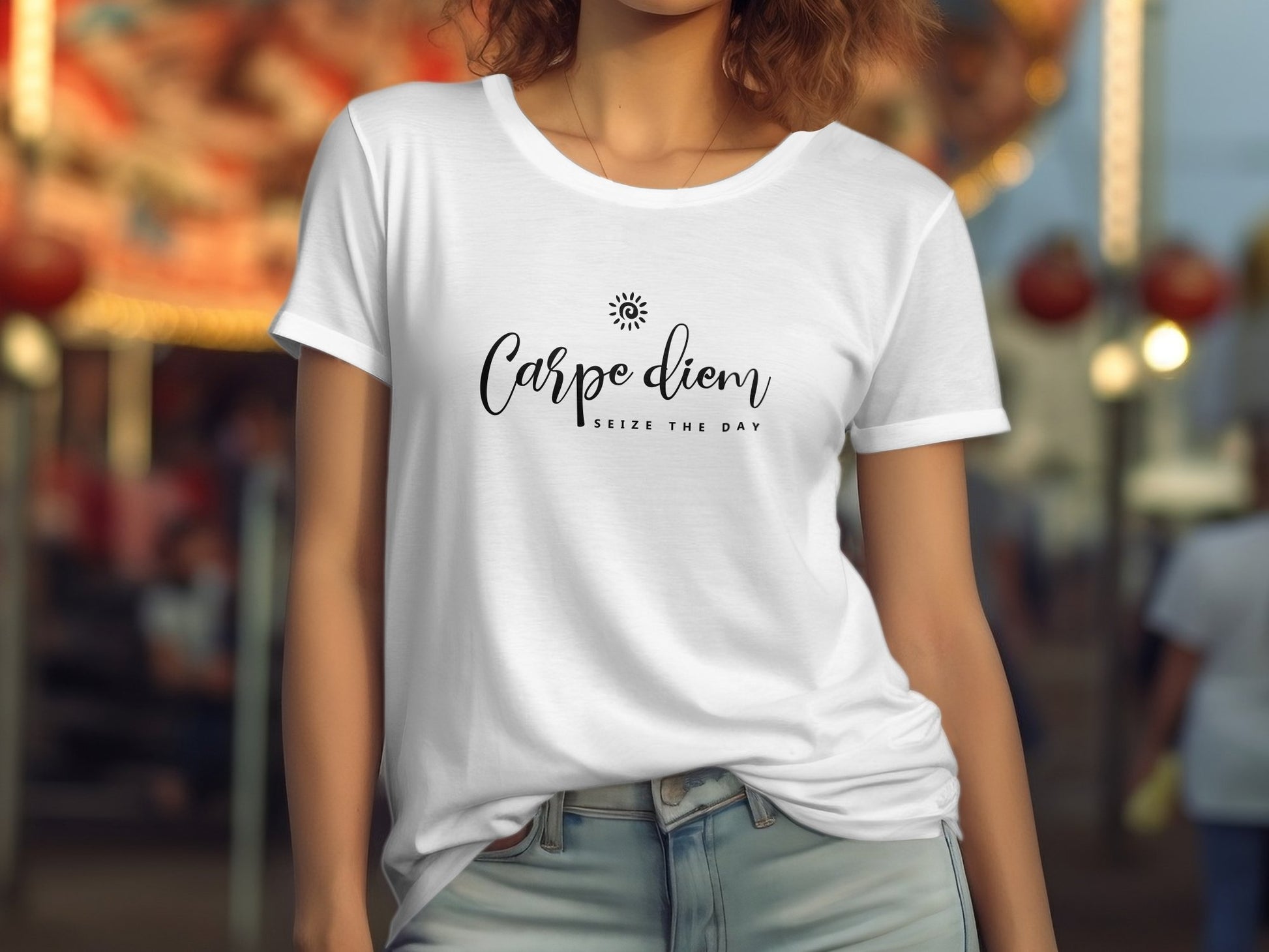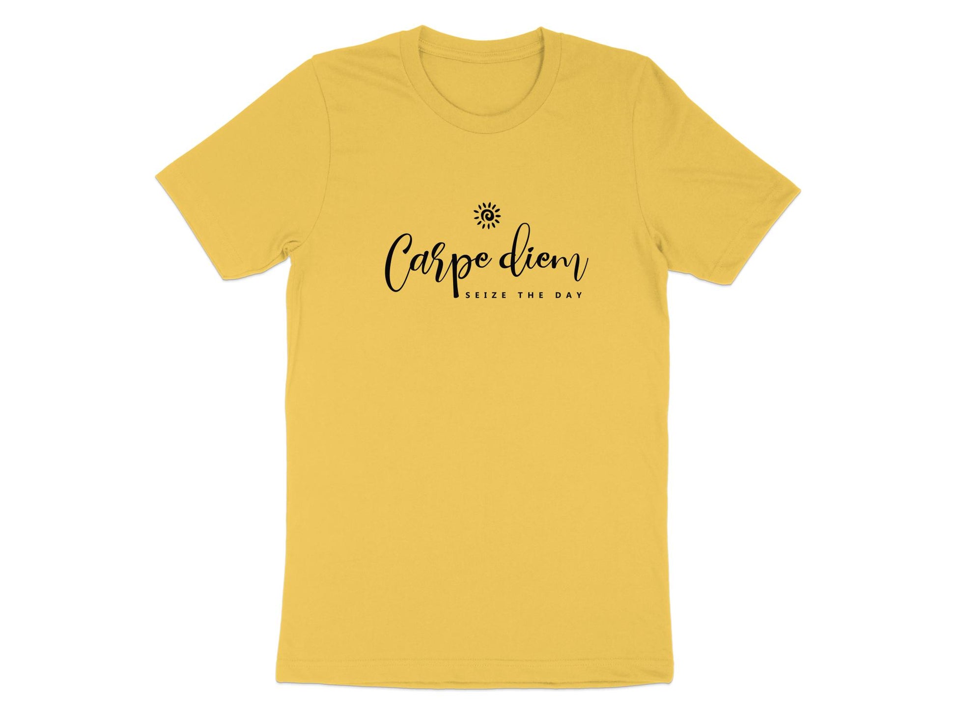 Carpe Diem - lebe den Moment! ✨ Dieses coole Damen T-Shirt erinnert dich mit stylischem Metallic-Print daran, jeden Tag zu genießen. Erhältlich in Gold, Bronze oder Pink für deinen persönlichen Look.