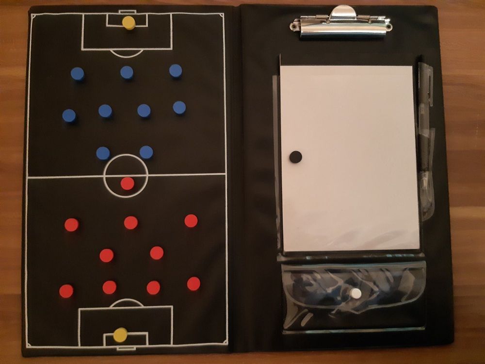 Für alle ambitionierten Fußballtrainer! Diese JAKO Trainer-Mappe ist dein bester Freund am Spielfeldrand. Mit magnetischem Spielfeld, 23 Magneten, Schreibblock und Kugelschreiber kannst du taktische Feinheiten perfekt visualisieren. Ob Spielzüge, Formationen oder Notizen - alles lässt sich einfach festhalten. Die kompakte Größe von 22,5 x 36 cm passt in jede Sporttasche. Aus stabilem Kunststoff gefertigt, hält sie auch bei häufigem Gebrauch problemlos durch. Übrigens: Nicht nur für Fußball geeignet - auch Handball-, Basketball- oder Hockeytrainer lieben diese praktische Mappe! Mach dein Training professioneller und bring deine taktischen Ideen besser rüber. Dein Team wird dir dankbar sein!