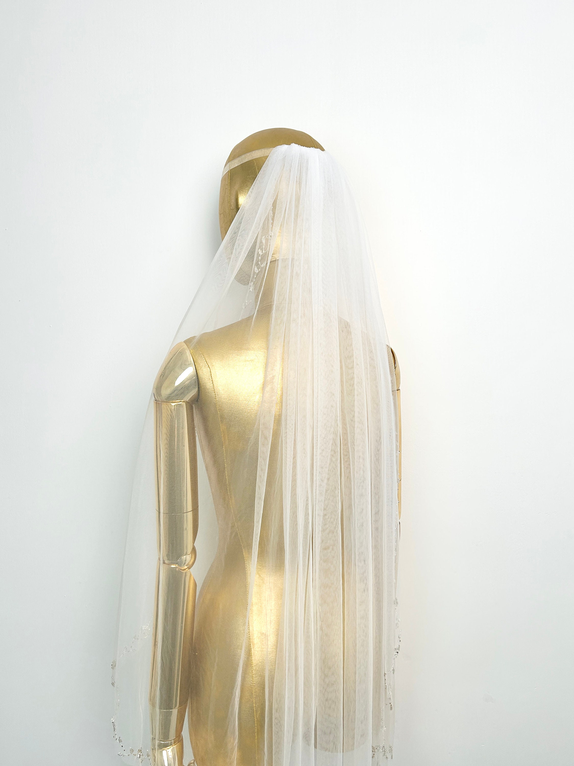 MTKSFDC Brautschleier Ivory - Langer Schleier Mit Perlen & Kamm 75-300cm Kathedralenlänge