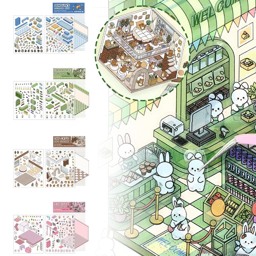 Kreativität pur mit diesen niedlichen 3D-Hausaufklebern! Das Set von TYXHXTF enthält 8 verschiedene Miniatur-Häuschen im Weihnachtsdesign - mit Bären, Pinguinen, Weihnachtsbäumen, Kaninchen und vielen anderen süßen Motiven. Einfach die Aufkleber nach deiner Fantasie auf glatten Oberflächen arrangieren und schon entstehen bezaubernde 3D-Szenen. Die hochwertigen Aufkleber sind wiederverwendbar und lassen sich leicht abziehen und neu positionieren. Perfekt für Stressabbau bei Erwachsenen und zur Förderung der Kreativität bei Kindern. Mit der beiliegenden Pinzette wird das Gestalten zum entspannenden Zeitvertreib. Ob für Fotoalben, Notizbücher, Handyhüllen oder als Deko fürs Kinderzimmer - diese Aufkleber machen überall eine gute Figur. Tolles Geschenk für kreative Köpfe jeden Alters!