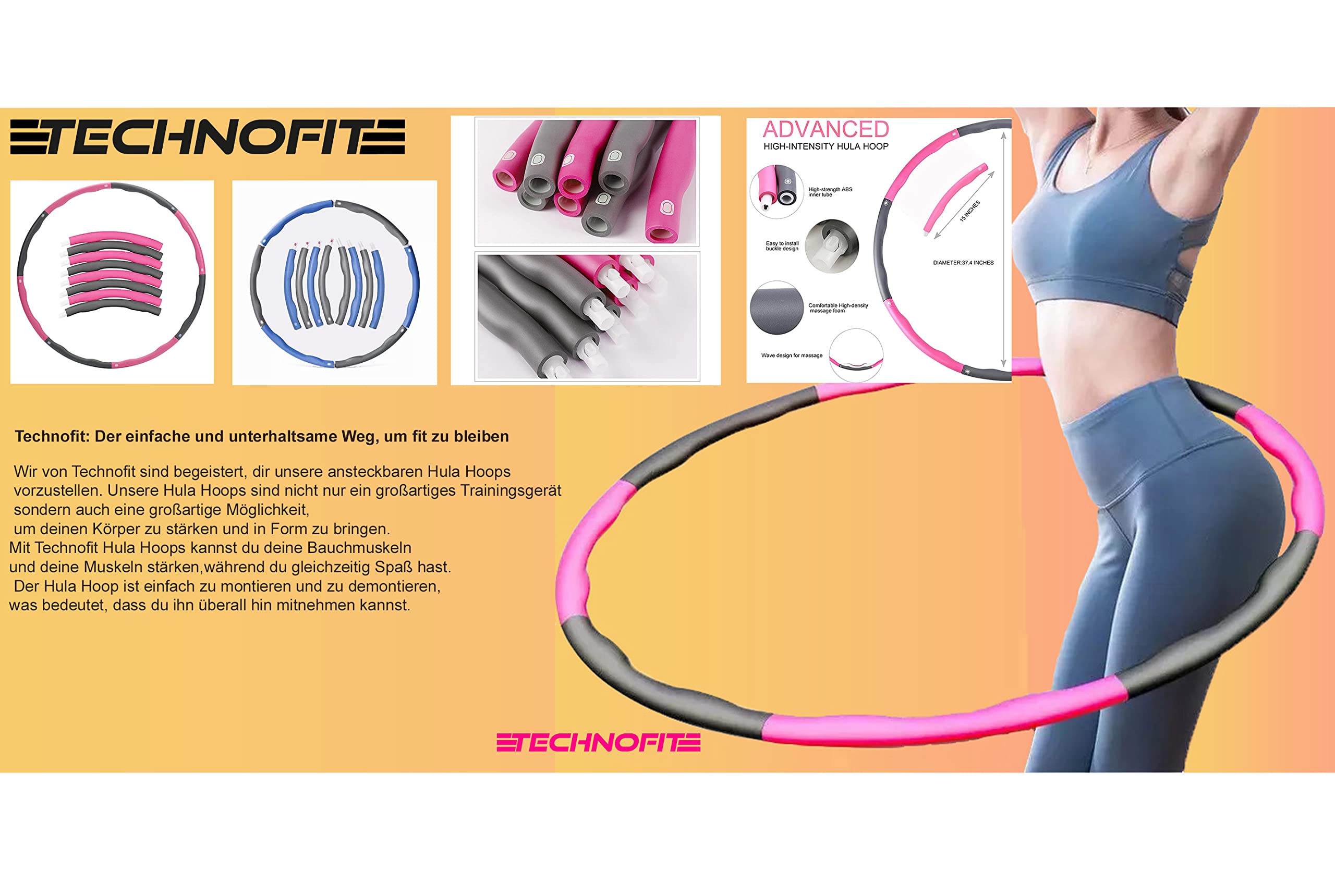 DIY Hula Hoop Reifen 8-teilig - Abnehmbarer Fitness Hoop In Bunten Farben