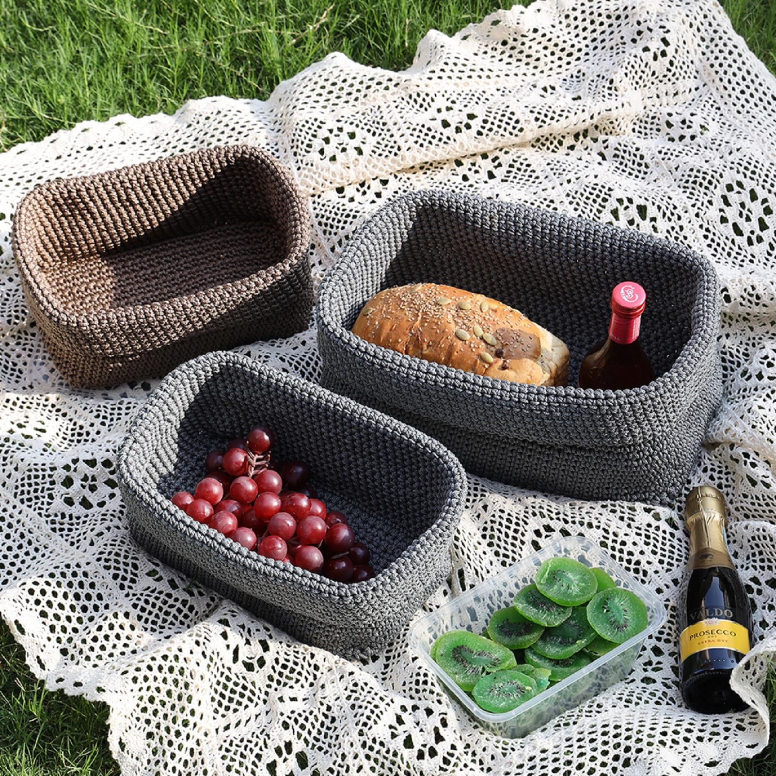 Ordnungs-Fans und Deko-Liebhaber, diese bezaubernden Häkelkörbe aus Baumwollseil sind eure neuen besten Freunde! Im praktischen 2er-Set mit großen (29×15×18,5cm) und kleinen (21×13×15,5cm) Körben. Handgefertigt aus hochwertigem Baumwollseil - natürlich, nachhaltig und super stylisch! Perfekt fürs Badezimmer (Handtücher, Kosmetik), Wohnzimmer (Zeitschriften, Decken), Kinderzimmer (Spielzeug) oder Eingangsbereich (Schlüssel, Taschen). Absolute Alleskönner! Besonders sicher für Haushalte mit Kindern oder Schwangeren - keine schädlichen Chemikalien! Waschbar bei 30°C in der Maschine - super pflegeleicht. Die weiche Baumwolltextur schont deine Möbel vor Kratzern. Wenn nicht gebraucht, einfach zusammenfalten und platzsparend verstauen. Die quadratische Form nutzt jeden Zentimeter Regal optimal aus. Verleiht jedem Raum diese wunderbare organische Atmosphäre! Hol dir jetzt diese vielseitigen Körbe und bringe Ordnung und Style in dein Zuhause!