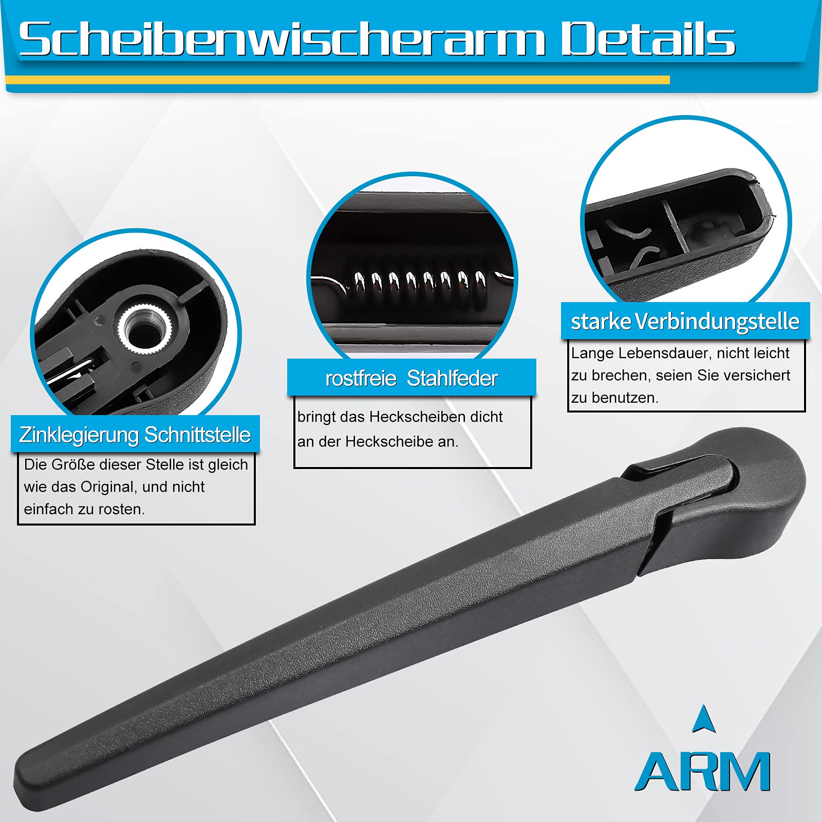 Klare Sicht nach hinten für deinen BMW E91 Touring! Dieses komplette Heckscheibenwischer-Set bringt deine Heckscheibe wieder zum Strahlen. Speziell für die BMW E91 Modelle von 2005 bis 2013 entwickelt - passt genau wie das Original! Im Set enthalten: Ein 350mm langes Wischerblatt aus hochwertigem Naturgummi für streifenfreies Wischen und ein 280mm langer Wischerarm aus Aluminiumlegierung - rostfrei und langlebig. Die Super-Stahlfeder sorgt für konstanten Anpressdruck bei jeder Geschwindigkeit. Montage ist super einfach - genau wie beim originalen BMW Wischer, in wenigen Minuten erledigt. Auch bei Regen, Schnee oder Hitze funktioniert der Wischer zuverlässig - getestet für alle Wetterbedingungen! Aus premium Kunststoff, Gummi und Stahl gefertigt - Qualität, die man sieht und spürt. Besonders leise im Betrieb - kein lästiges Quietschen mehr! Perfekter Ersatz für verschlissene Originalteile - aber zum fairen Preis. Dein BMW verdient das Beste - und das bekommst du hier! Bei Fragen helfen wir dir innerhalb von 24 Stunden weiter - Service, auf den du zählen kannst!