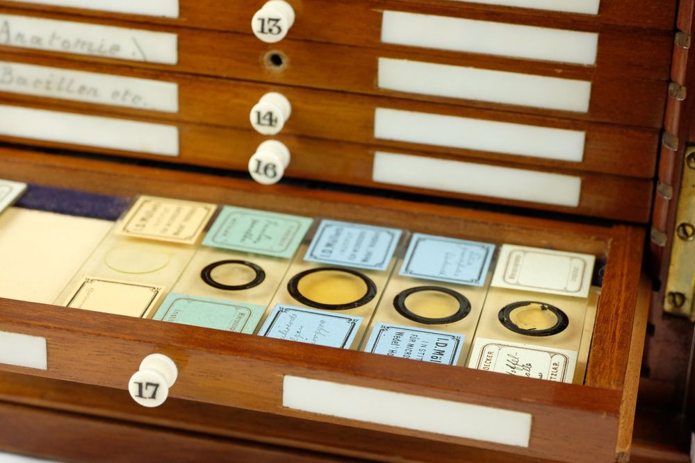 Mikroskop Präparate-Box Holz - Für 50 Objektträger | Nummerierte Fächer