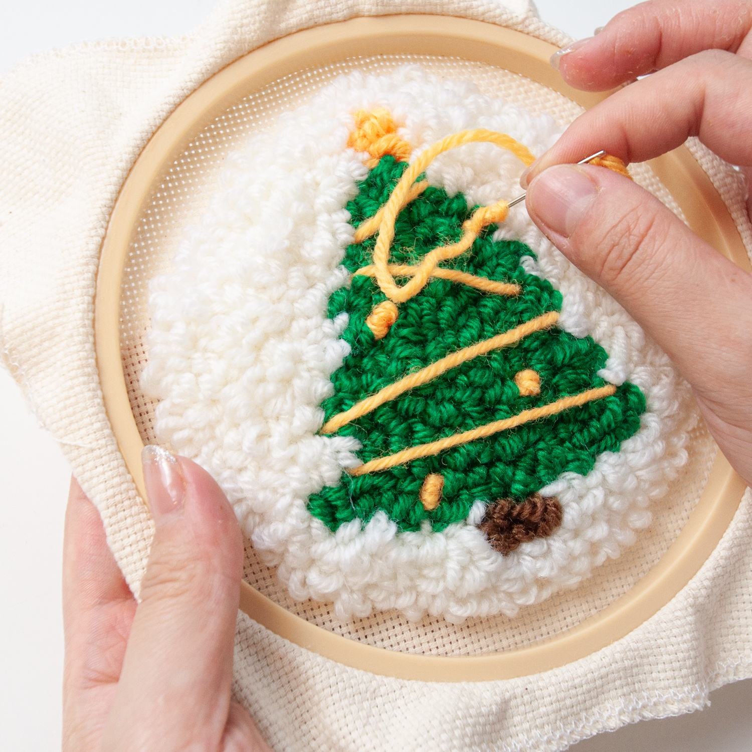 Entdecke die entspannende Welt des Punch Needle Handwerks! Dieses Starter-Kit ist perfekt für alle, die mal was Neues ausprobieren wollen.\n\nWas alles im Kit enthalten ist:\n- 2 weiße Baumwollstücke für Untersetzer\n- Spezielles Sticktuch\n- Punch Needle Nadel\n- Einfädler für einfaches Garnwechseln\n- 12,5 cm Stickrahmen\n- Klebestift für sauberen Abschluss\n- Ausführliche Anleitung\n- Reichlich Stickgarn in verschiedenen Farben\n\nSo einfach geht Punch Needle:\n1. Stoff im Rahmen spannen\n2. Nadel mit Garn fädeln\n3. Muster nach Anleitung sticken\n4. Rückseite mit Kleber fixieren\n5. Fertig - dein persönlicher Untersetzer!\n\nWarum Punch Needle so entspannend ist:\n- Einfache Technik - schnell zu lernen\n- Meditative Wirkung - ideal zum Abschalten\n- Sofort sichtbare Ergebnisse\n- Perfekt für Fernsehabende\n- Kreativ ohne großen Aufwand\n\nPerfekt für:\n- Absolute Anfänger ohne Vorkenntnisse\n- Kinder ab 10 Jahren (mit Aufsicht)\n- Stressabbau nach der Arbeit\n- Geschenke selbst gemacht\n- Kreative Pausen\n\nDie fertigen Untersetzer:\n- Praktisch für Gläser und Tassen\n- Einzigartiges Design\n- Waschbar und langlebig\n- Perfektes Geschenk\n\nTipp: Nimm dir Zeit und genieße den Prozess. Punch Needle ist wie Meditation - es geht um den Weg, nicht nur um das Ergebnis!\n\nMach dein Zuhause gemütlicher mit selbstgemachten Accessoires. Dieses Kit ist der perfekte Einstieg in die Welt des Handarbeitens!