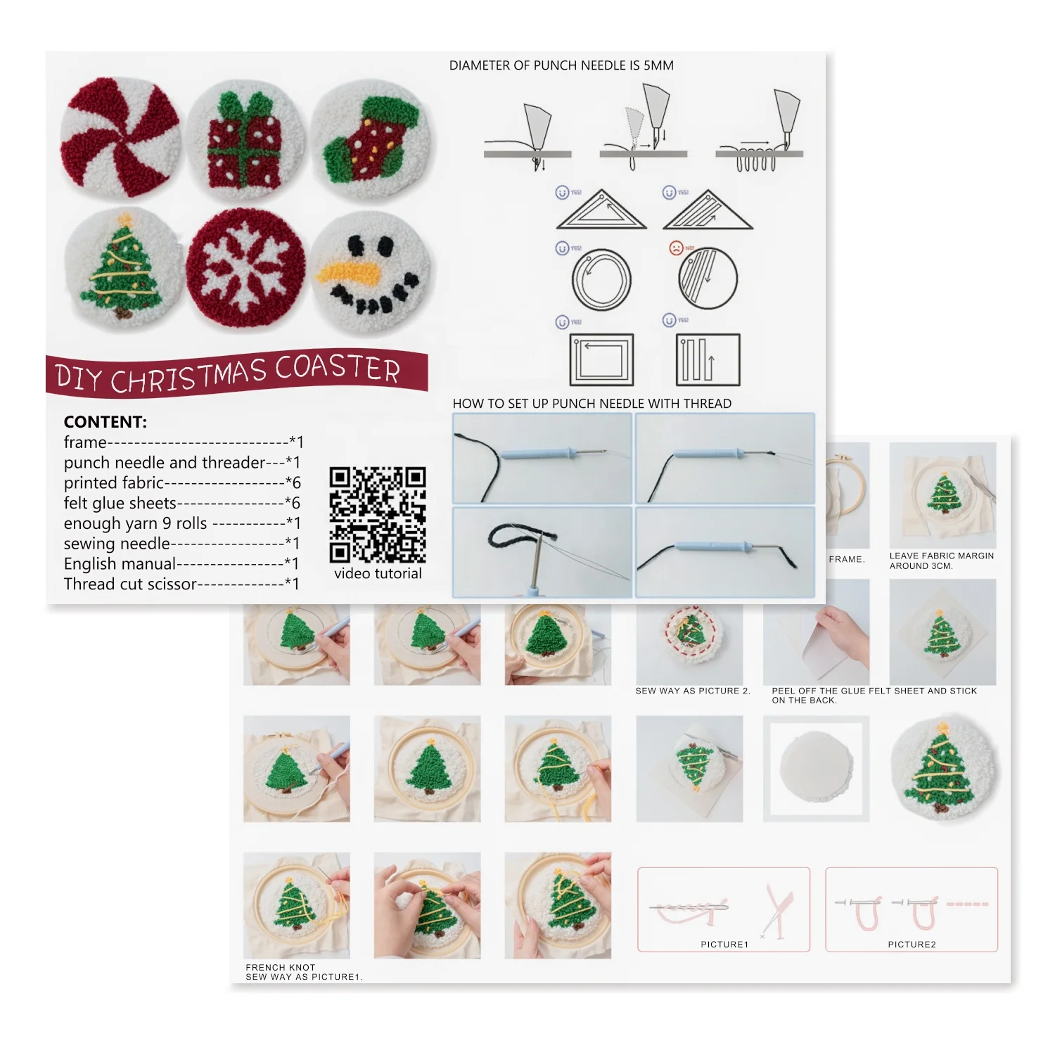 Punch Needle Untersetzer Kit - DIY Stickerei Set Für Anfänger Mit 2 Coastern