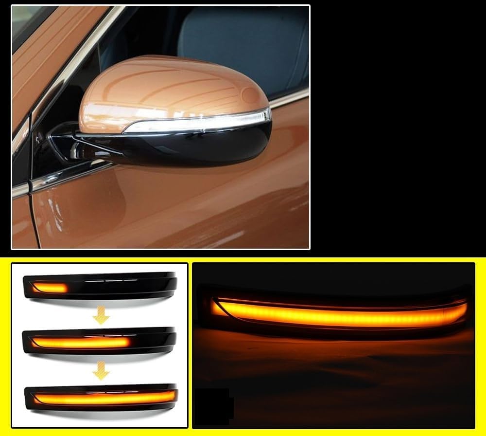 Upgrade für deinen Kia Sorento! Diese dynamischen LED-Seitenblinker machen dein Auto sicherer und stylischer. Die smooth-scrolling Animation sieht nicht nur cool aus, sondern ist auch super auffällig für andere Verkehrsteilnehmer. Perfekt für Sorento UM Modelle von 2015-2020. Einfach Plug-and-Play Installation - keine Programmierungen nötig! IP67 wasserdicht und mit E-Prüfzeichen für maximale Sicherheit. Ersetzt die Originalteile 87613-C5000 und 87623-C5000. Die matte Oberfläche ist kratzfest und langlebig. Besonders bei Regen oder Nebel erhöht sich deine Sichtbarkeit deutlich - Sicherheit geht vor! Einfach einbauen und von moderner LED-Technologie profitieren!