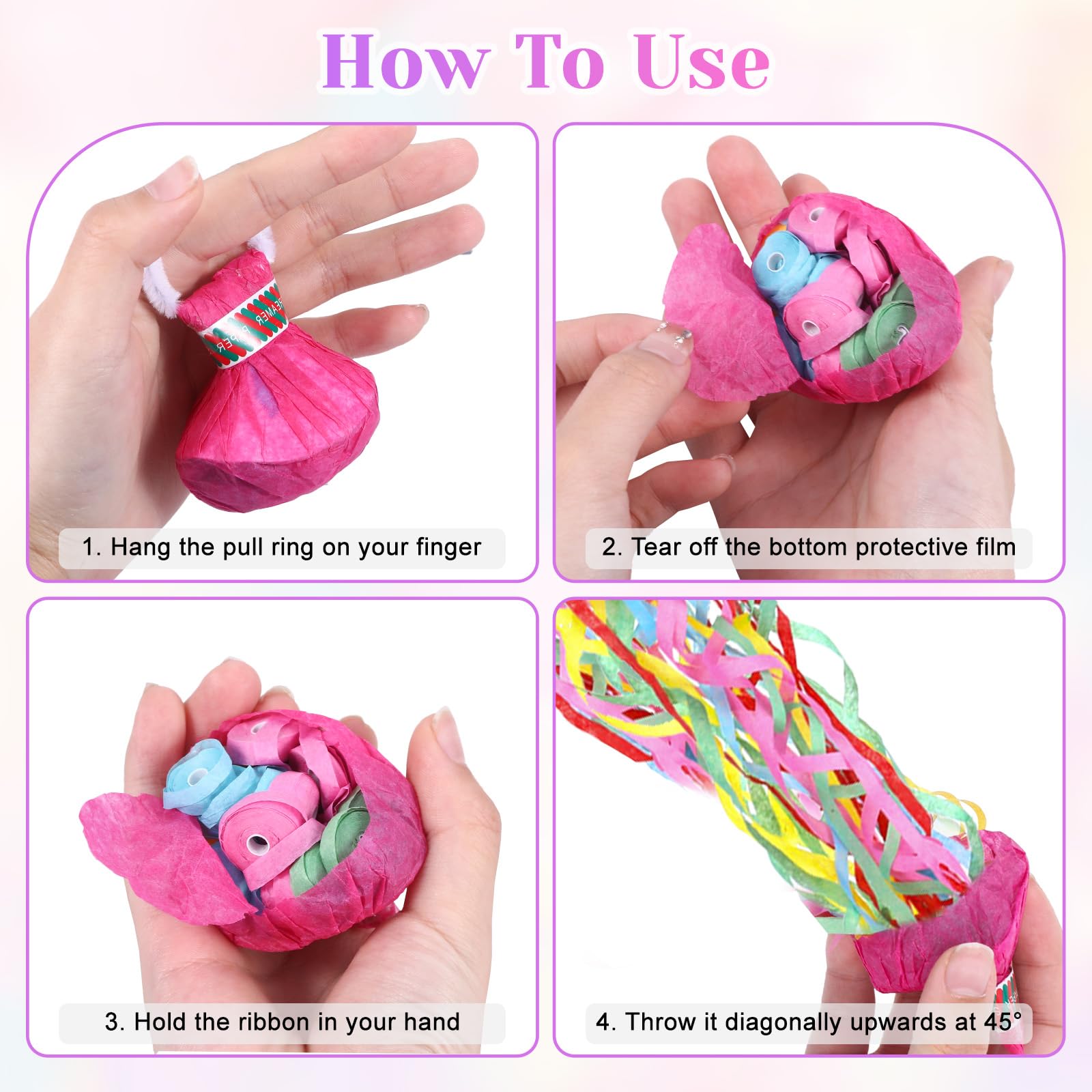 Party ohne Luftschlangen? Undenkbar! Mit diesen 10 bunten Luftschlangen-Bomben wird jede Feier zum absoluten Highlight. Einfach den Ringgriff haken, unteres Papier abreißen und im 45-Grad-Winkel werfen - schon schießen 30 bunte Seidenpapier-Streamer heraus! Aus umweltfreundlichem, schwer entflammbarem Papier - sicher für Groß und Klein. Perfekt für Hochzeiten, Geburtstage, Weihnachtsfeiern, Abschlussfeiern oder einfach so. Und das Beste: Kein lästiges Aufräumen wie bei normalem Konfetti! Einfach die Bänder an einem Ende zusammenziehen und ordentlich verstauen. Ob für drinnen oder draußen - diese Luftschlangen bringen sofort Partystimmung. Auch super für Fotosessions oder als Überraschungsmoment. Mach jede Feier unvergesslich mit diesen coolen Wurf-Luftschlangen!
