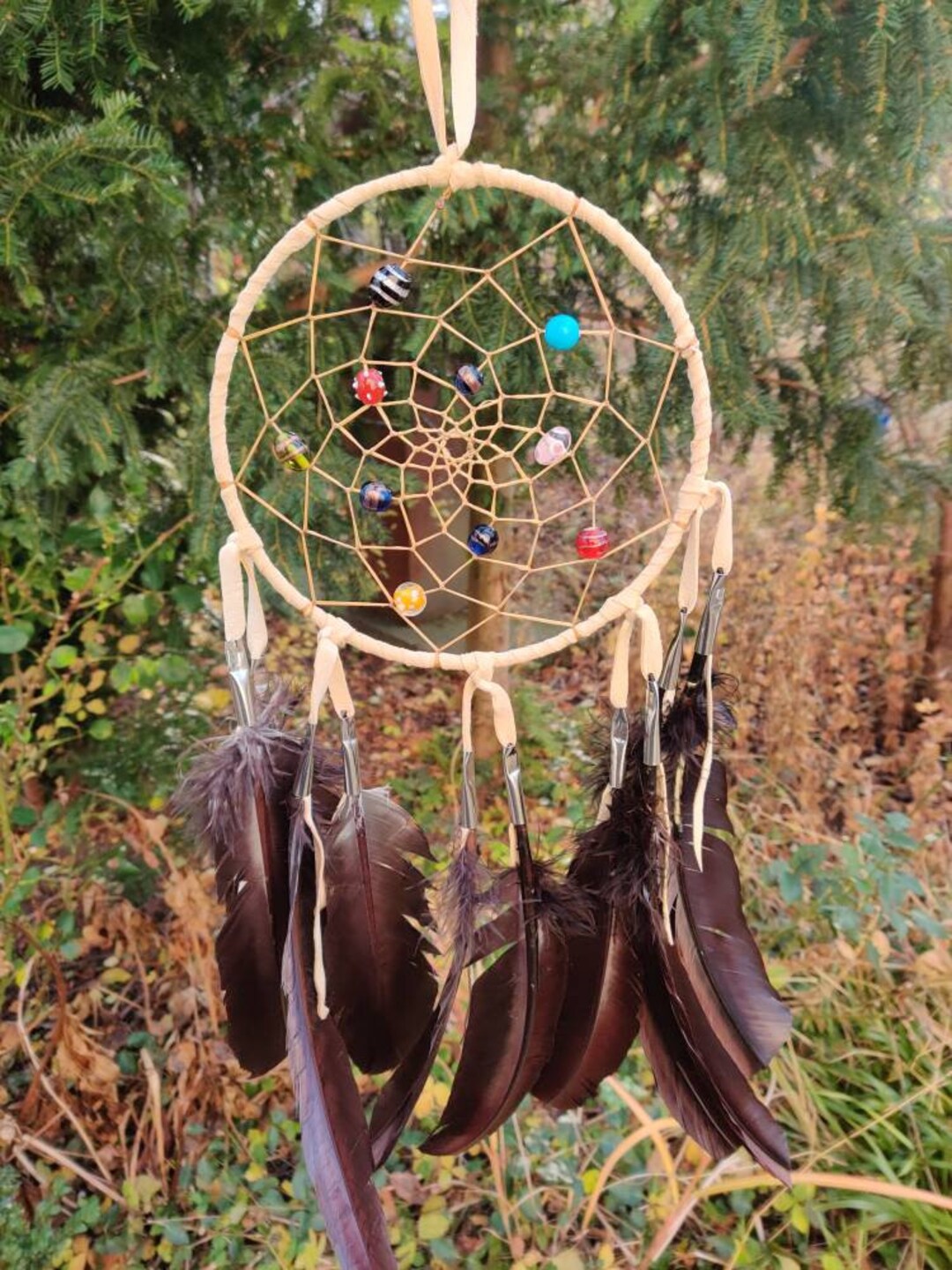 Boah, dieser Traumfänger ist einfach magisch! In Herzform und handgewebt - jedes Stück ein Unikat. Das besondere: Er hat integrierte LED-Lichter, die ganz sanft leuchten und eine total gemütliche Atmosphäre schaffen. Perfekt fürs Schlafzimmer oder Wohnzimmer! Mit 60cm Länge ist er ein richtiger Hingucker. Komplett mit Federn, Baumwollfäden und Holzperlen - alles natürlich und authentisch. Die Batterien (2 Knopfzellen) sind sogar schon dabei! Ob an der Wand, am Fenster oder über dem Bett - dieser Traumfänger bringt nicht nur Schutz für schöne Träume, sondern auch ne mega Stimmung in dein Zuhause. Einfach aufhängen und entspannen - die sanfte Beleuchtung hilft sogar beim Einschlafen!