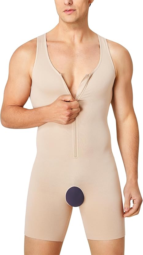 Für eine schlankere Figur ohne Stress! Dieses Shapewear-Shirt für Männer sorgt mit spezieller X-förmiger Kompression an Brust und Bauch für eine definiertere Silhouette. Perfekt, um den \Bierbauch\ zu kaschieren und eine glatte Kontur unter der Kleidung zu schaffen.\\n\\nDas atmungsaktive Material ist weich und angenehm auf der Haut, während es gleichzeitig diskret Gynäkomastie verbirgt. Der offene Schritt macht den Toilettengang super einfach - ohne komplett ausziehen zu müssen!\\n\\nVon der Brust bis zu den Oberschenkeln formt dieser Body Shaper deinen ganzen Körper. Die breiten Schulterträger sorgen für bequemen Sitz ohne Druckstellen. Unsichtbar unter T-Shirts, Hemden oder Pullovern tragbar - ob im Job, in der Freizeit oder bei besonderen Anlässen.\\n\\n• Kompression: X-förmig für Brust und Bauch\\n• Design: Ärmelloses Shirt mit Bein-Shorts\\n• Besonderheit: Offener Schritt für einfache Toilettengänge\\n• Material: Weich, dehnbar, atmungsaktiv\\n• Unsichtbar unter jeder Kleidung\\n• Für Arbeit, Freizeit und formelle Anlässe\\n• Stärkt das Selbstvertrauen durch glattere Silhouette