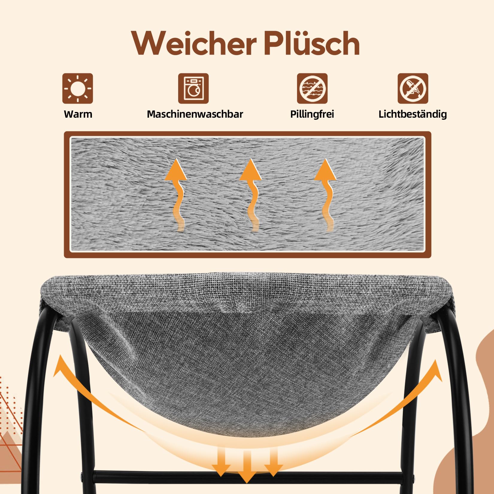 LIFLIX Katzenhängematte Mit Ständer - Kuscheliges Hochbett Für Drinnen & Draußen In Grau