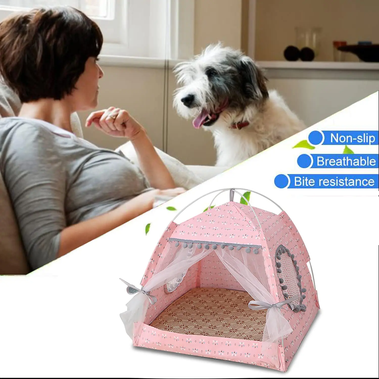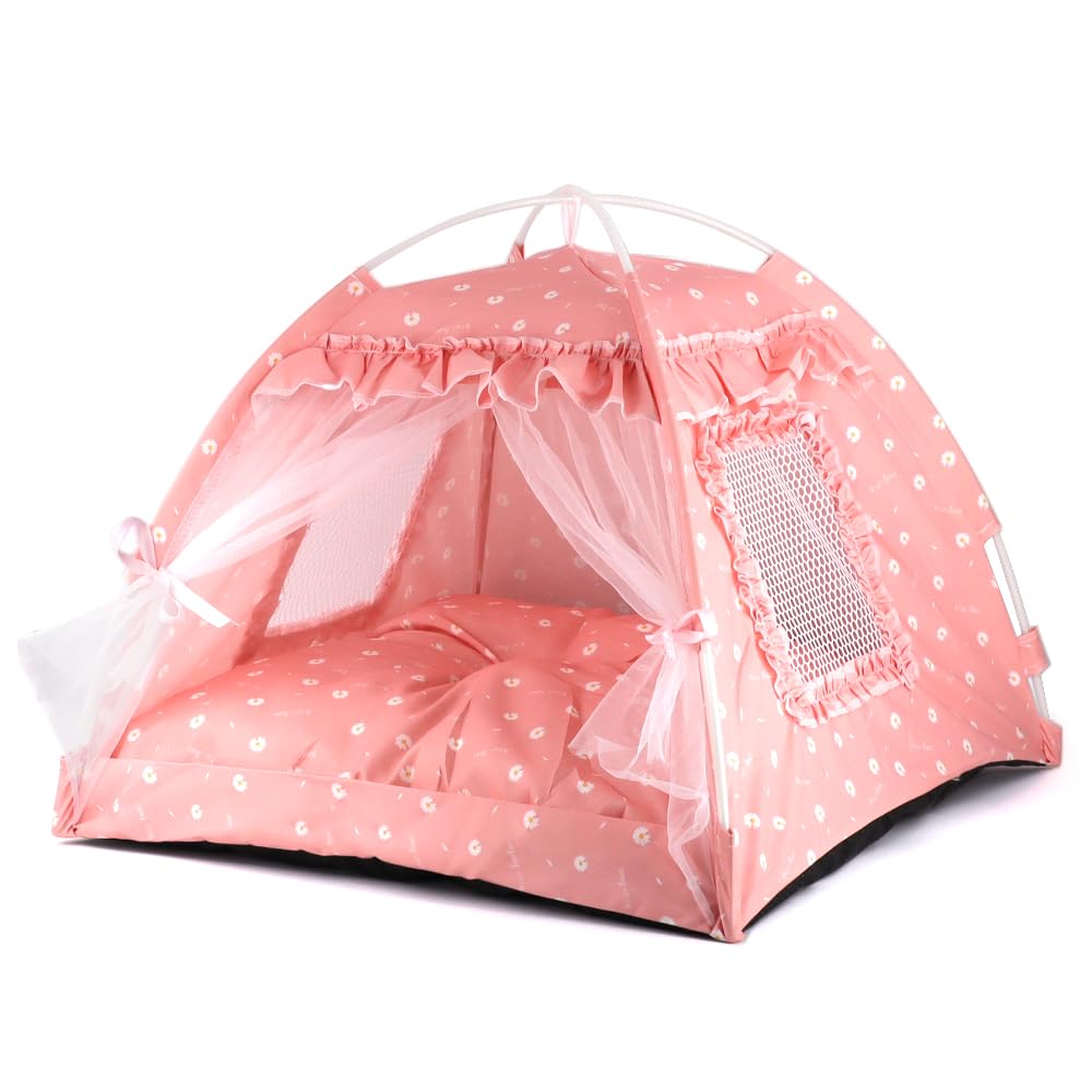 Dein Haustier verdient sein eigenes Reich! Dieses süße Hundezelt in Hellrosa bietet die perfekte Rückzugsmöglichkeit für Hunde und Katzen. Mit doppelseitiger Matte: eine Seite warm für Winter, die andere kühl für Sommer. Aus weichem Polyester und Baumwolle gefertigt, leicht und tragbar - ideal für Zuhause oder Camping. Einfach zu falten und zu verstauen. Die Matratze ist waschmaschinenfest für einfache Reinigung. Verschiedene Größen verfügbar. Ob als gemütliche Höhle in der Wohnung oder als Schutz im Freien - dein Liebling wird dieses Zelt lieben. Schenk deinem Vierbeiner seinen eigenen gemütlichen Platz zum Träumen und Entspannen!