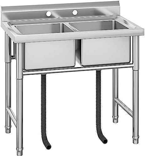 Professionelles Spülen wo immer du willst! Diese massive Edelstahl-Spüle mit zwei Becken (je 40x40cm) ist ein echter Allrounder. Mit 100x60x94cm Maßen und 94cm Höhe perfekt für Garten, Garage, Keller oder Gewerbe. Aus rostfreiem Edelstahl der ewig hält. Die 10cm hohe Rückwand schützt vor Spritzern, die verstellbaren Füße gleichen unebene Böden aus. Inklusive Edelstahl-Sieb das Verstopfungen verhindert. Super fürs Geschirrspülen, Gemüse waschen oder sogar kleine Wäschestücke. Ob im Café, Restaurant oder daheim - hier wird alles blitzblank!
