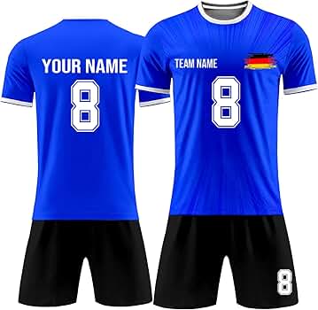 Dein eigenes Trikot mit Namen! Dieses personalisierte Fußball-Set kannst du komplett individualisieren - mit deinem Wunschnamen, deiner Lieblingsnummer und sogar eigenem Logo. Aus atmungsaktivem Material das schnell trocknet und super bequem ist. Perfekt für Training, Spiele oder einfach zum Angeben. Für Kinder und Erwachsene in verschiedenen Größen erhältlich. Einfach auf 'Jetzt anpassen' klicken und dein Design zusammenstellen. Das perfekte Geschenk für jeden Fußball-Fan - zu Geburtstag, Weihnachten oder zum Saisonstart. Zeig allen wer auf dem Platz das Sagen hat!