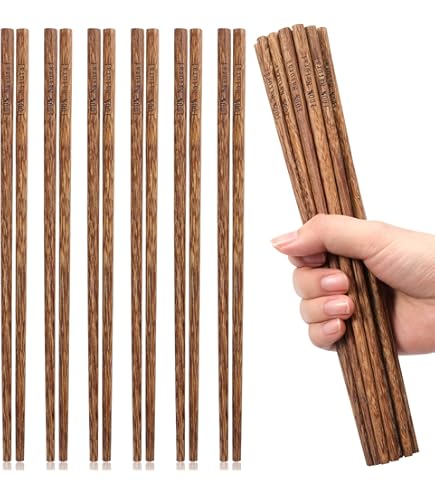 Perfekt für Sushi, Asiatisch und mehr! Diese 10 Paar Essstäbchen aus echtem Eisenholz sind einfach super praktisch. Mit 25 cm Länge liegen sie gut in der Hand und die rutschfeste Oberfläche macht das Essen zum Kinderspiel. Aus robustem Eisenholz gefertigt, halten sie ewig und sind spülmaschinenfest - einfach reinigen und immer wieder verwenden! Die natürliche braune Farbe sieht total edel aus und passt zu jedem Tisch. Super für zu Hause, Restaurant oder unterwegs beim Picknick. Im praktischen 10er-Set hast du immer genug für die ganze Familie oder Gäste parat. Umweltfreundlich, langlebig und einfach schön - probier's aus!