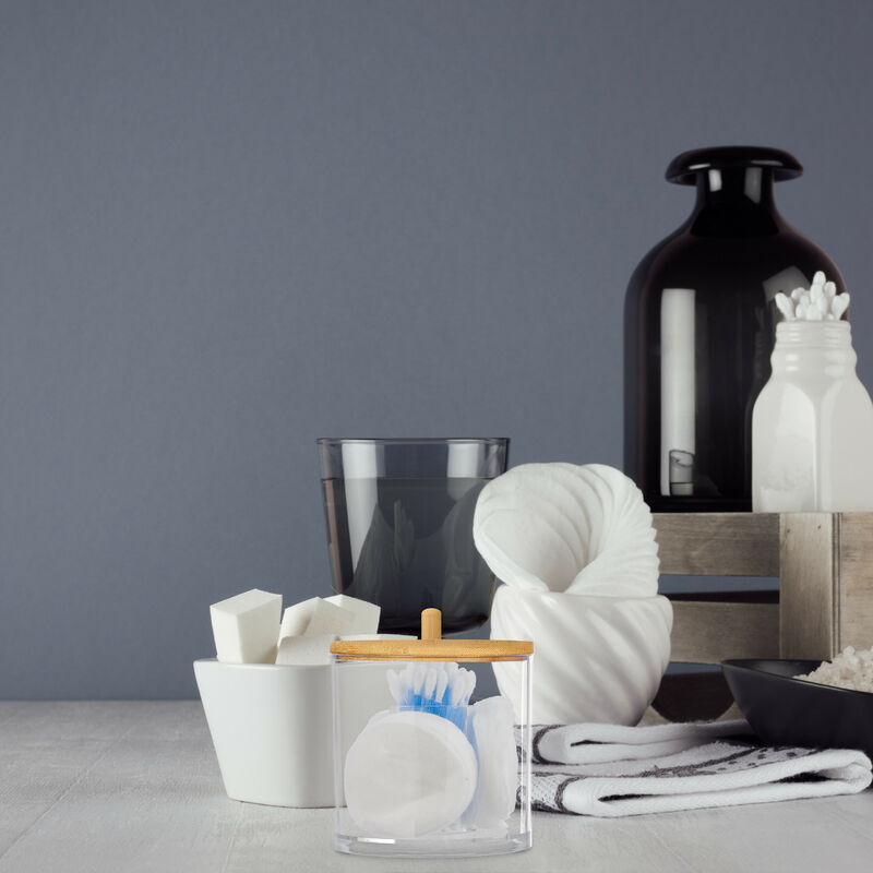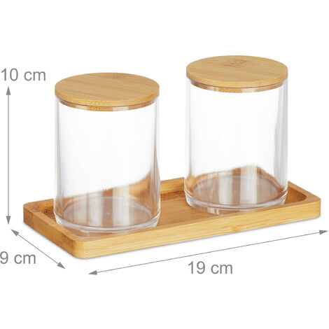 Relaxdays Wattestäbchen-Behälter Mit Bambusdeckel - Organizer Für Wattepads & Beauty-Zubehör