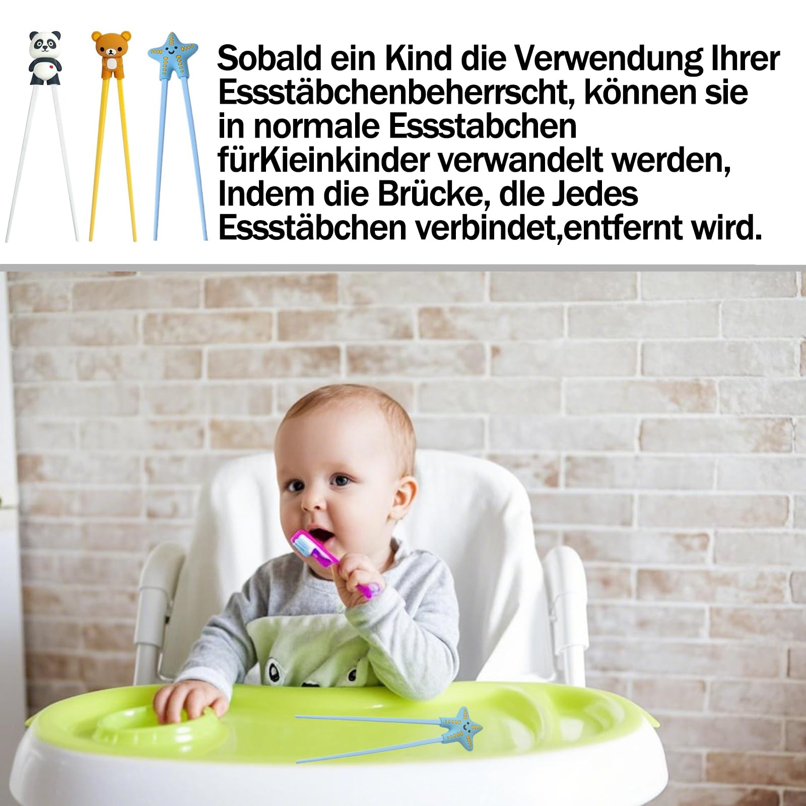 Sushi essen lernen war noch nie so spaßig! Diese 3 Essstäbchen mit süßen Tier-Designs (Seestern, Panda, Bär) machen das Training zum Vergnügen. Mit abnehmbaren Spitzen für einfache Reinigung. Die automatische Rückstell-Funktion hilft kleinen Händen. Aus sicherem Silikon und ABS - absolut kindgerecht. Perfekt für Familienessen, Kindergarten oder Restaurant. Dein Kind wird Stäbchen lieben lernen - spielerisch und mit viel Freude!