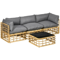 Outsunny 4 Personen Gartenmöbel Set - 3-teilig Mit Couchtisch & Kissen - Creme Polyrattan Für Terrasse & Balkon
