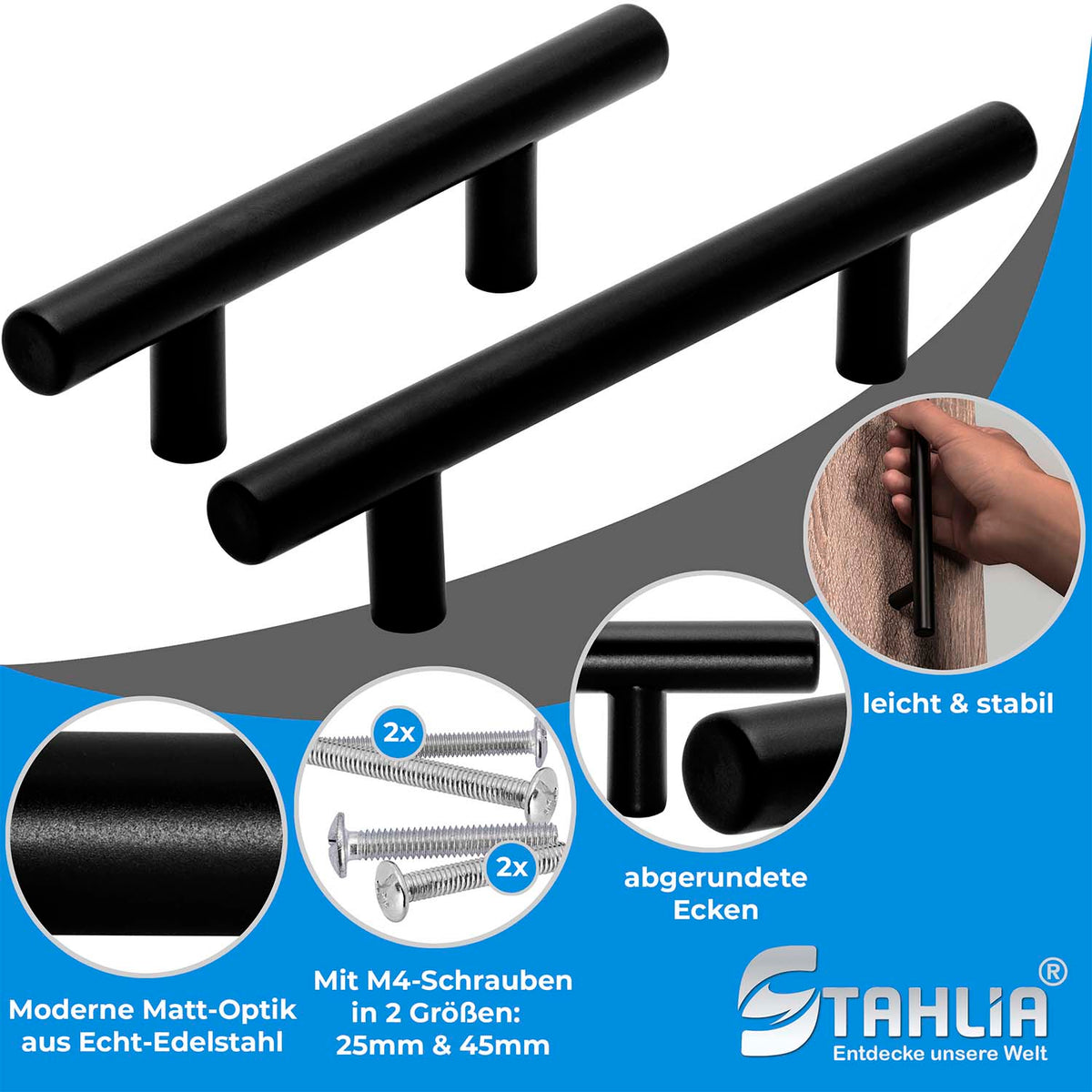 Stahlia Möbelfuß 15cm Schwarz Matt - Höhenverstellbar Bis 150kg Belastung