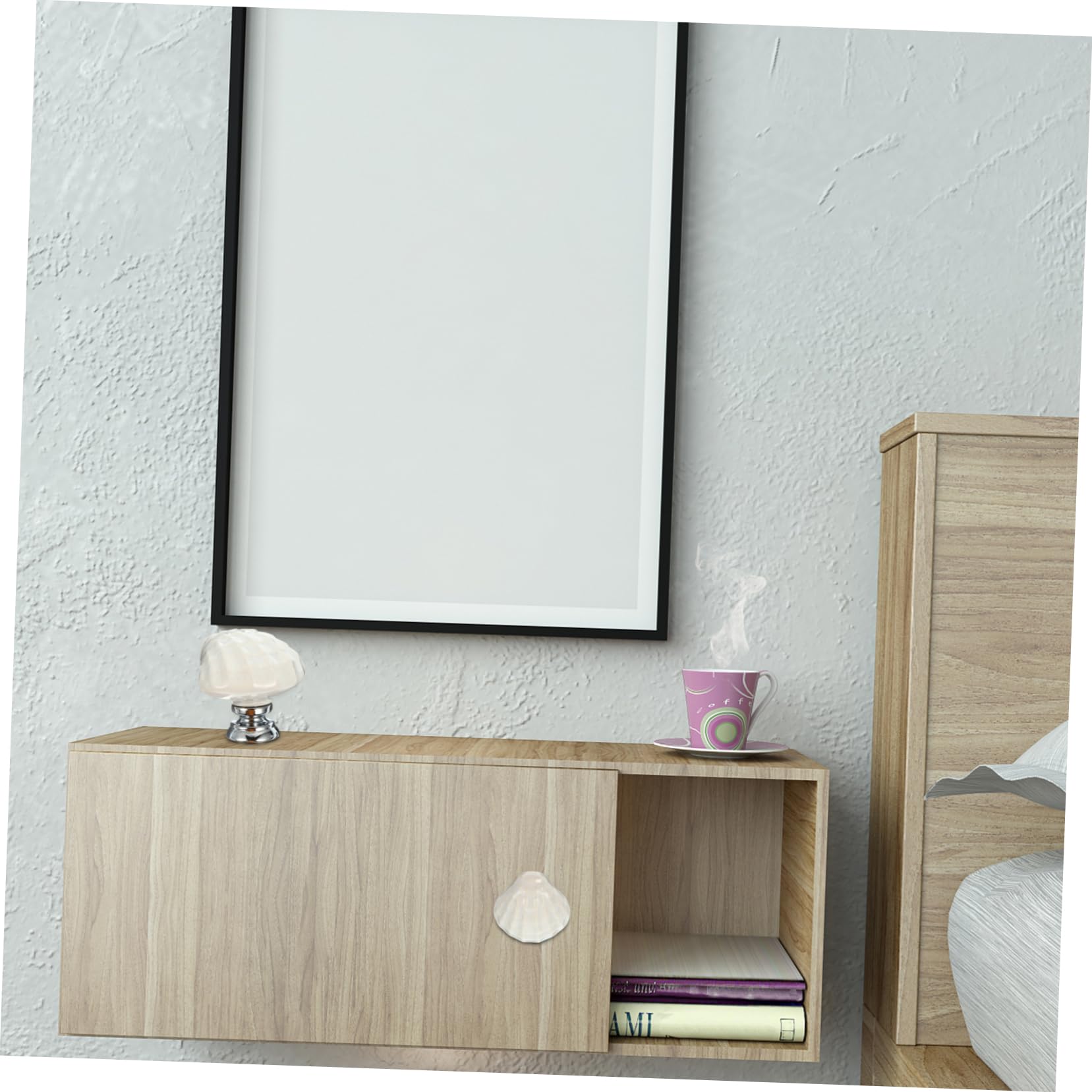 FUTUREORYY 6 Stück Keramik Möbelknöpfe Muschelform - Weiße Schubladengriffe Cartoon Stil