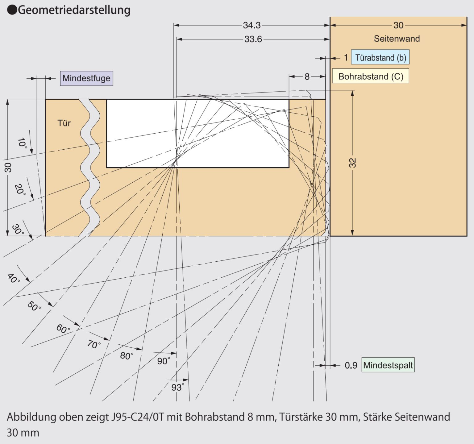 Schwerlast Möbelscharniere LAMP J95 - 2 Stück Für Türen Bis 25kg Mit Zuhaltung